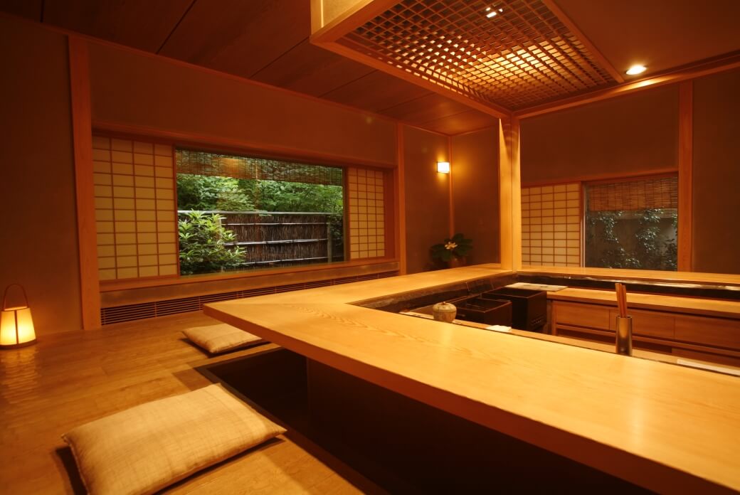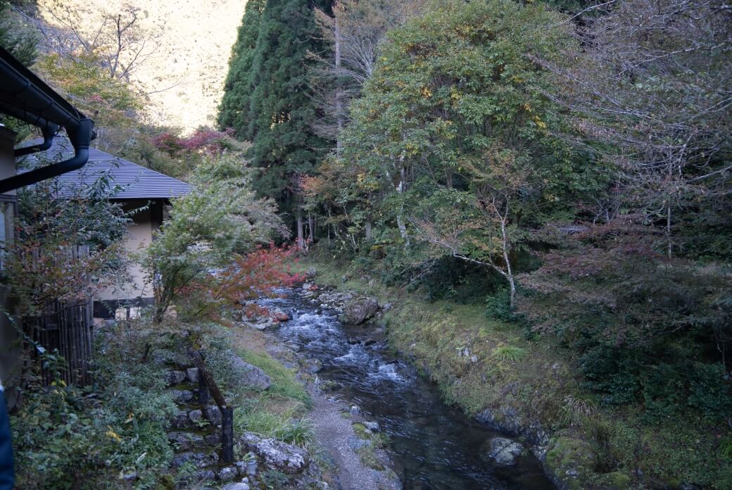 京都観光もそこそこに明るいうちにチェックイン。創業120年を超える老舗は、峰定寺参りの宿坊として始まったお宿。現在は料亭旅館として改装し、摘み取った季節の草花や旬の野菜に魚を取り入れた「摘草料理」で旅人をもてなしている。客室の月見台からは鳥の声や川のせせらぎを聞くことができ、まるで部屋の中にいながら花脊の豊かな自然に包まれたような外を感じられる空間となっている。