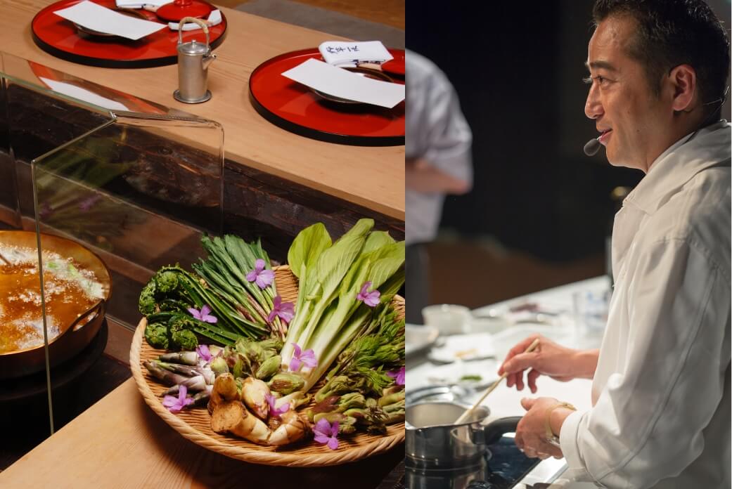 伝統の「摘草料理」を進化させる4代目当主の中東氏。移り変わる時代に合わせて、最先端の技術や調理器具、海外のシェフとの交流を通じて、美山荘の料理に落とし込んでいく。「料理は進化していくもの」そう語る中東氏の料理や食材に対する哲学やサービスへのこだわり、今回LEXUSとのコラボレーションに至った経緯などを伺った。