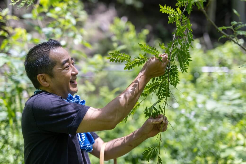 美山荘での体験は、屋内だけにとどまらず、花脊の豊かな自然に包まれて実施されるプログラムもある。通年実施可能な日本一高い三本杉散策と4~6月限定の摘草体験だ。三本杉散策は、地元の峰定寺の神木として信仰を集めている「花脊の三本杉」を訪ねる。摘草体験は、美山荘の料理の源泉でもある摘草を、ご当主案内のもと体験する。自然と向き合い「素の自分に戻る」豊かな時間を過ごすことができる。