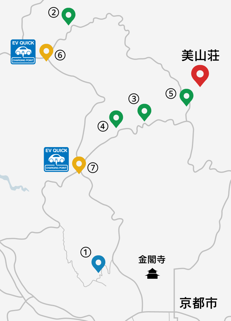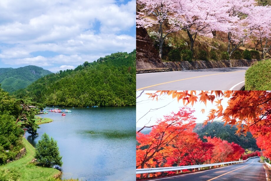 美山荘の周辺には、知られざる奥京都の魅力が多く点在している。四季折々にその表情を変える自然は、隠れた桜や紅葉の名所になっており、訪れるたびに新しい発見をくれる。充電しながら休憩できる道の駅やドライブルートも外せない。美山荘に訪れたからこそ、見れる風景を周辺スポットと共に一部ご紹介。