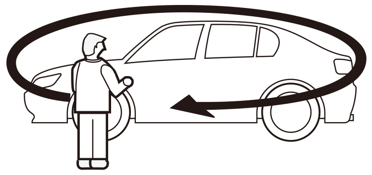 点検は壁やミラーを利用するか、他の人に見てもらって確認します。