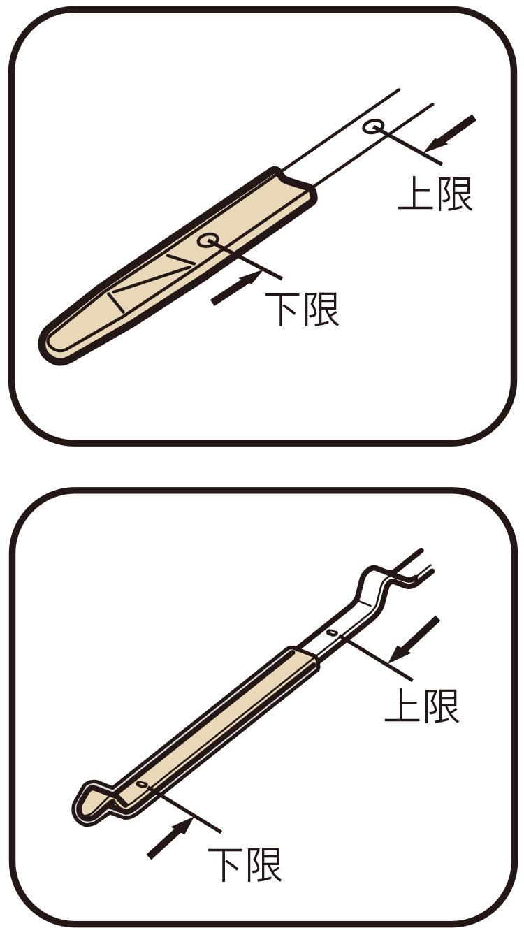 ゲージ式はレベルゲージのF(上限)とL(下限)の間にあるかを点検します。