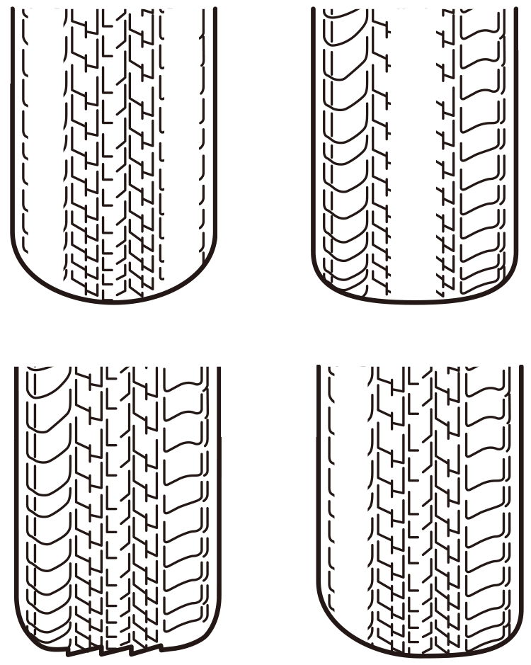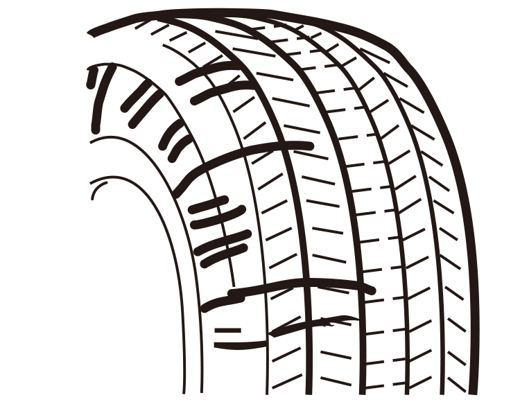 タイヤ接地面に極端な片べりなどの偏摩耗がないかを点検します。