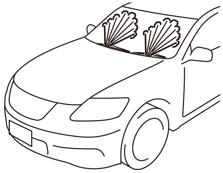 ウォッシャーを作動させて、ウォッシャー液が勢いよく噴射するか、また、ワイパーの払拭範囲のほぼ中央に当たるかを点検します。
