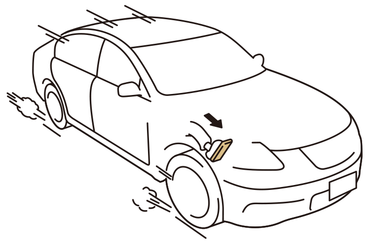 パーキングブレーキが十分にかけられていなかったり、輪止めをしないとお車が動き思わぬ事故につながるおそれがあります。