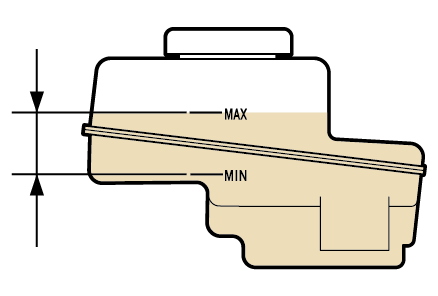 - ● 液の減少が著しいときや、ブレーキ液面がMIN(下限)より低いときは、液漏れなどが考えられます。ただちにレクサス販売店で点検をお受けください。