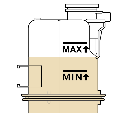 液量がリザ-バータンクのMAX(上限)とMIN(下限)の間にあるかを点検します。