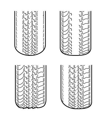 タイヤ接地面に極端な片べりなどの偏摩耗がないかを点検します。
