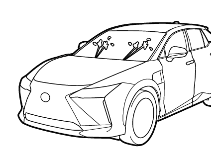 ウォッシャーを作動させて、ウォッシャー液が勢いよく噴射するか、また、ワイパーの払拭範囲のほぼ中央に当たるかを点検します。