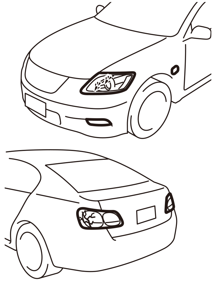 各ランプのレンズ、反射器に、汚れや変色、破損、ヒビ割れがないかを点検します。