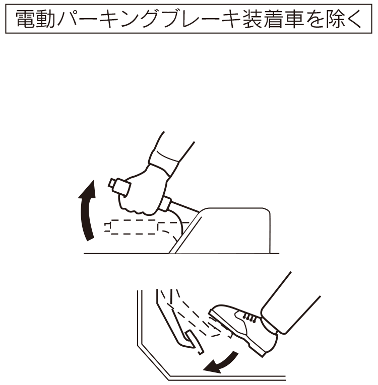 エンジンまたは、システム※を始動しブレーキペダルをいっぱいに踏み込み、床板とのすき間を点検します。また、ペダルの感触に次の様な異状がないかを点検します。