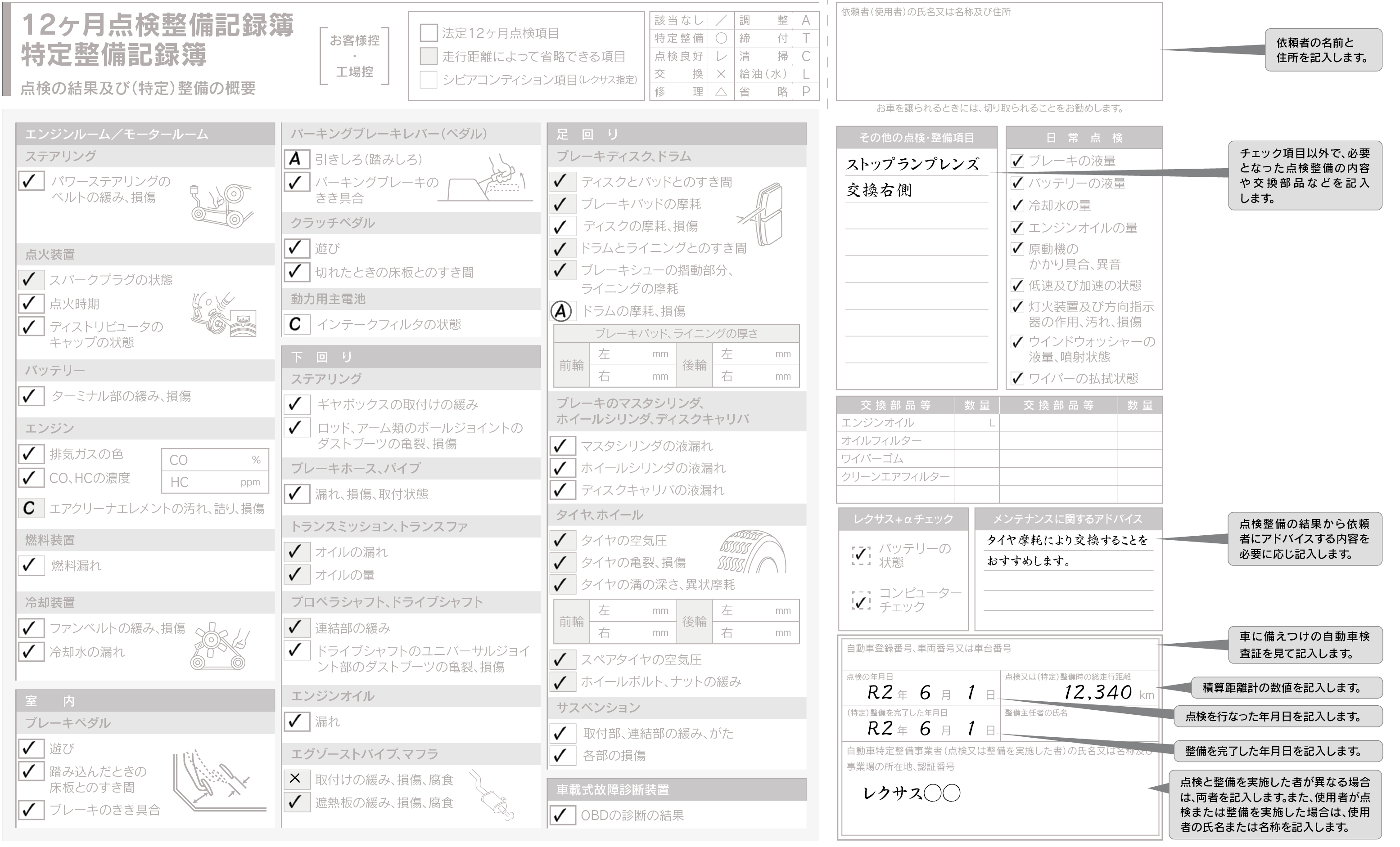 - 12ヶ月点検整備記録簿 特定整備記録簿
