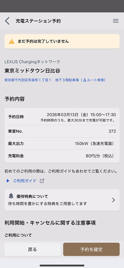 LEXUS Charging会員の方は、LEXUS Chargingネットワーク・TEEMOネットワーク・PREMIUM CHARGING ALLIANCEネットワーク・e-Mobility Powerネットワークは予約なしでご利用いただけます。