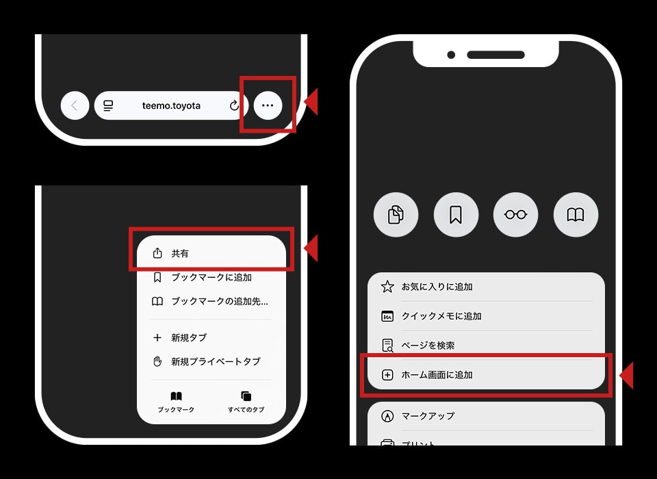 まずは、下のリンクまたはQRコードからTEEMOアプリをインストールします。ご利用のスマホによってアプリのインストール方法は異なります。iPhone/Androidでのご利用手順をご確認いただきアプリをインストールしてください。アプリをインストールせずwebサイトからご利用いただく事も可能です。
