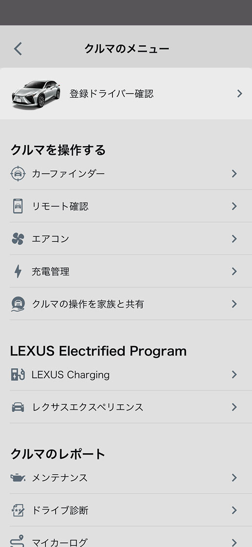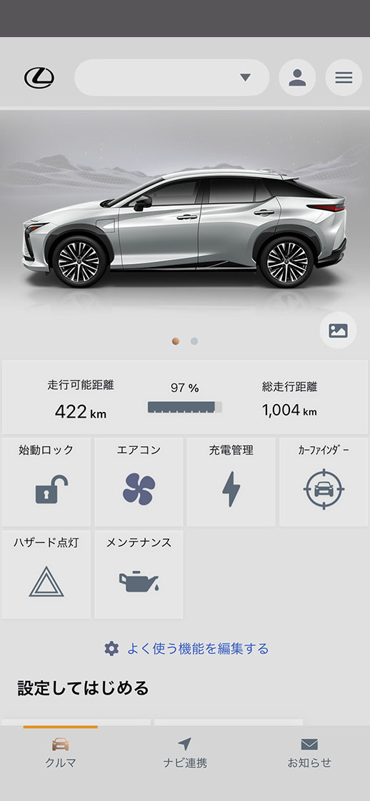 My LEXUSアプリを立ち上げ、
