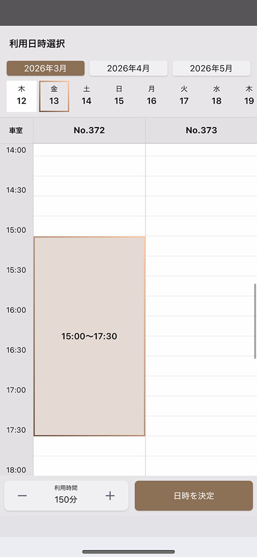 店舗詳細画面から利用日時を指定
