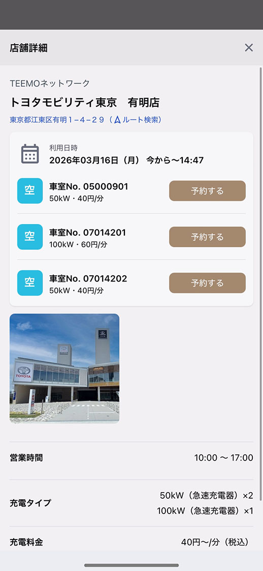 予約したい充電ステーションを選択