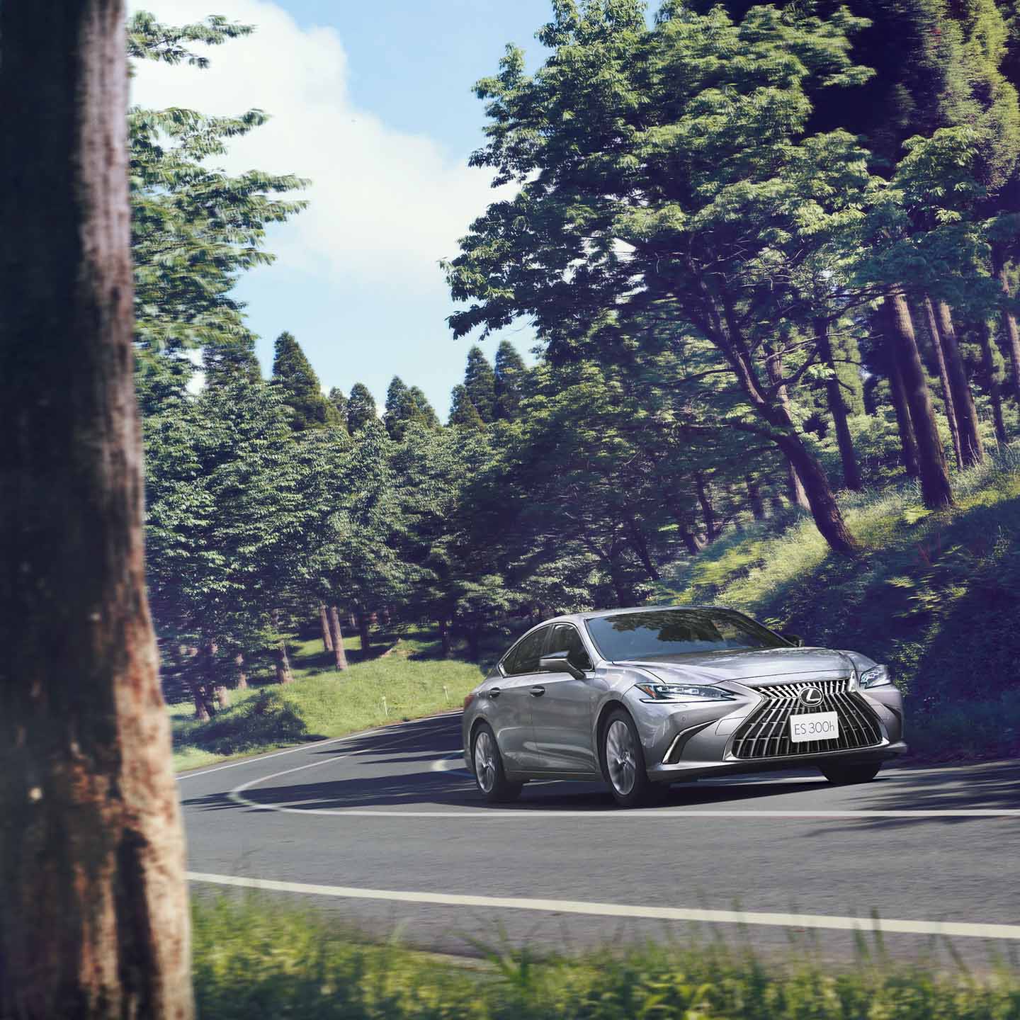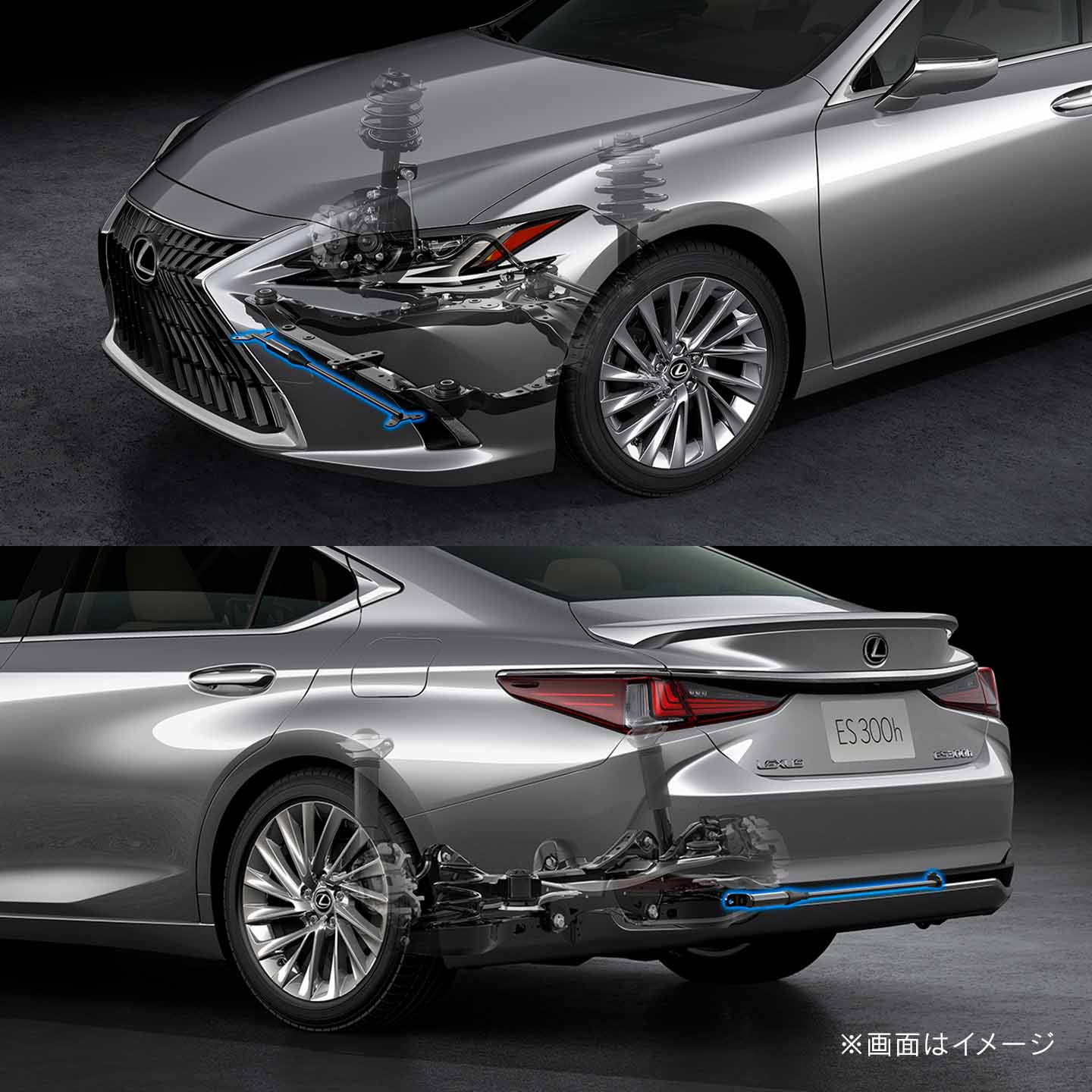 静は乗り心地と静粛性。動は走行性能。背反する二つの性能をどれだけ高度に両立させられるか。それがES300hの新しい挑戦でした。まずレクサス独自の手法により、リヤサスペンションメンバーブレースの剛性をアップ。特にねじりや曲げに対する剛性を高め、乗り心地を向上させながら、よりリニアでドライバーの意のままのドライビングフィールを実現しています。また、電子制御ブレーキシステムの制御定数の変更、ブレーキペダルパッド形状の変更など、さまざまなアプローチでブレーキのコントロール性を向上。走り出した瞬間から深いくつろぎで包み込む上質な快適性。そして、減速、操舵、加速のシームレスでリニアな応答により、あらゆるシーンで胸の高鳴るパフォーマンスを発揮する走り。ESが到達した静と動のバランスは、想像の遙か上にあります。
