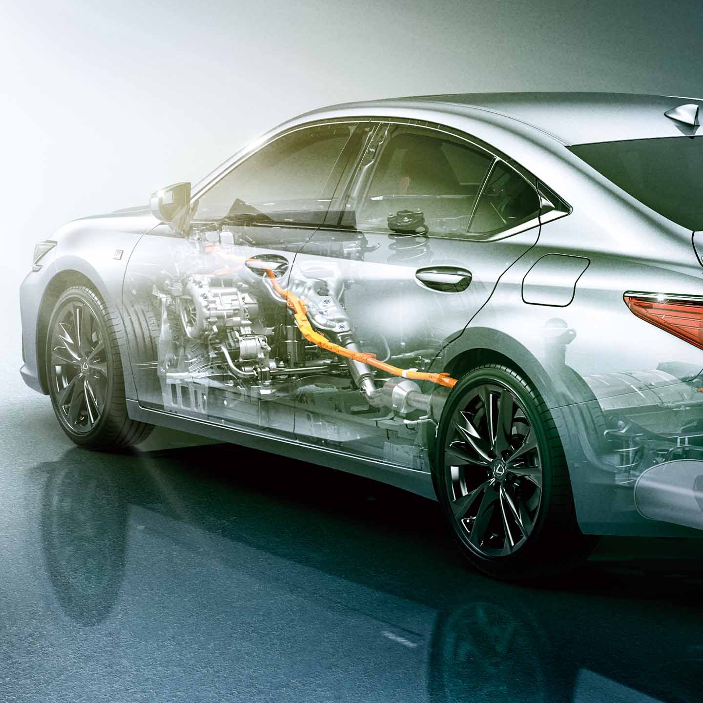 デザイン、車両運動性能、乗り味、静粛性、安全性など、すべてにおいて、すぐれたES300hを開発するために、クルマの基盤であるプラットフォームを徹底的に作り込みました。GA-Kプラットフォームは、低重心化と前後荷重配分の適正化やジオメトリーを最適化することでドライバーの意図通りにクルマが反応し、高い直進安定性や速く安定したコーナリング、アクセルを踏んだときの気持ちの良い加速感をもたらします。さらに、室内に伝わる振動・ノイズを伝達経路のみならず、エンジンやタイヤといった源流まで遡って低減することで、快適な乗り心地と高い静粛性を両立しました。