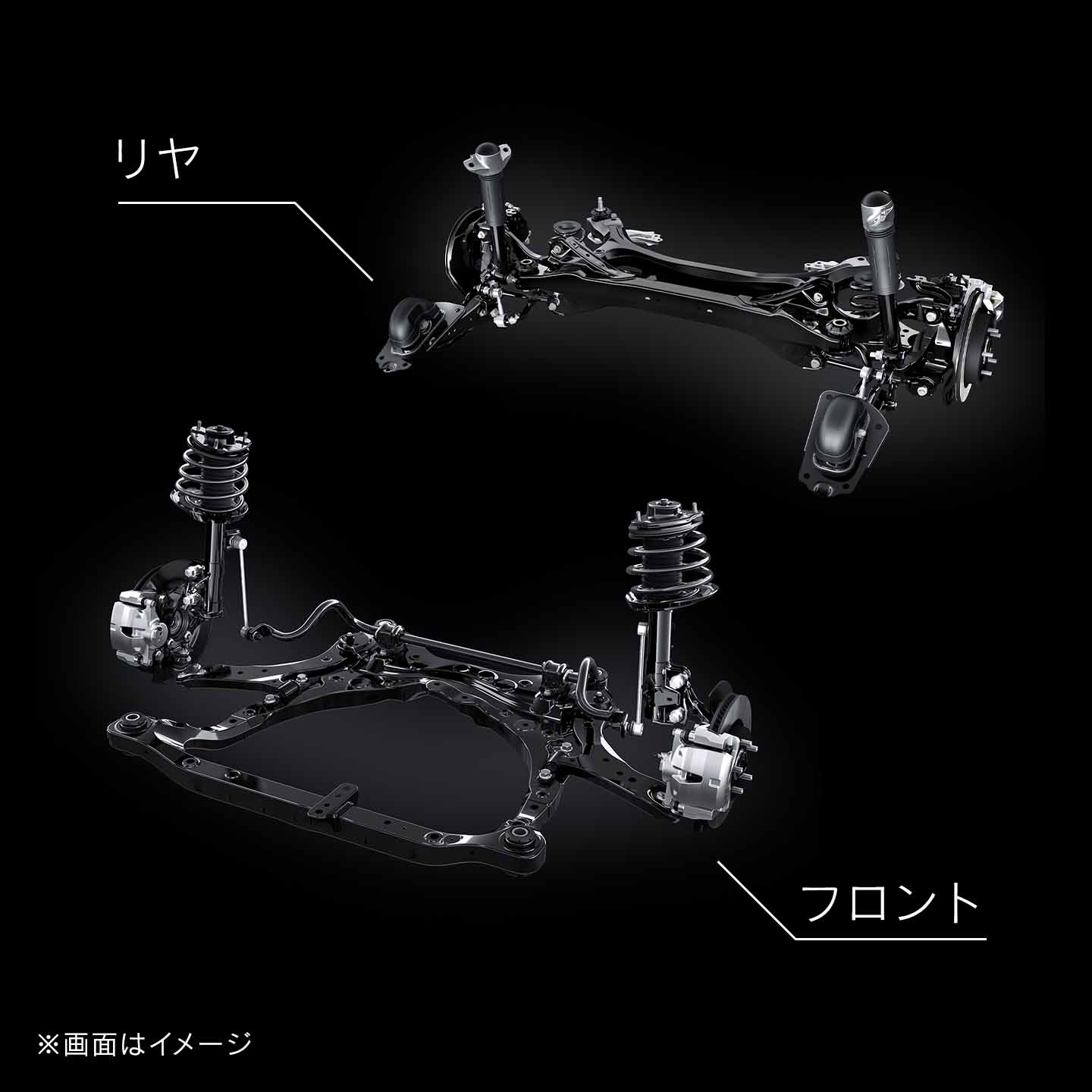 フロントサスペンションは、ジオメトリーの最適化を図り、すぐれた操舵応答性と旋回姿勢、上質な乗り心地を実現。リヤサスペンションは、アーム配置を最適化したトレーリングアーム式ダブルウイッシュボーンサスペンションを採用。路面の凹凸をスムーズにいなすことで、操縦安定性と乗り心地を高次元で両立しています。さらには、リヤサスペンションメンバーブレースを1枚板による構造から2枚の板を合わせた構造に変更することで剛性を向上。特にねじりや曲げに対する剛性を高め、乗り心地を向上させるとともに、高速のレーンチェンジといったシーンにおいても、よりリニアで、ドライバーの意のままのドライビングフィールを実現します。