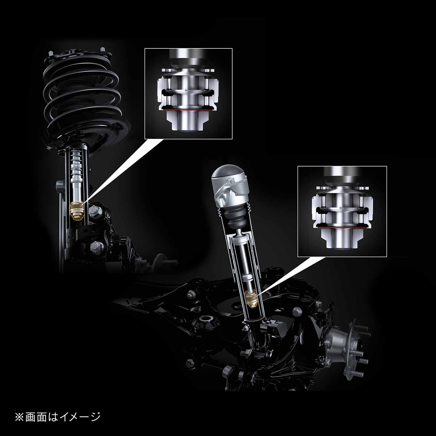 フロントとリヤのサスペンションにスウィングバルブショックアブソーバーを設定。走り出してすぐの低速域から高速走行時まで、わずかな路面の凹凸に対しても最適な減衰力を確保しました。フラットな車両姿勢によるすぐれた安定感や、高速走行時のしなやかな乗り心地を実現しています。