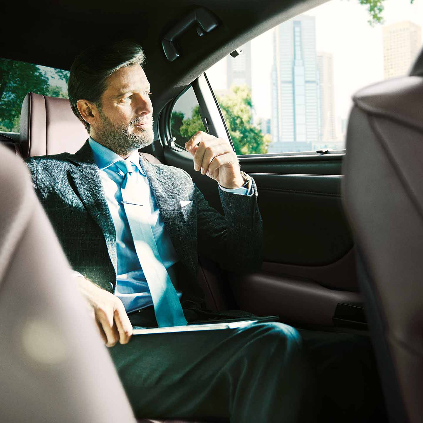 “version L”に、電動リクライニング機能、コントロールパネル付のアームレスト、シートヒーターを設定。エアコンやオーディオ、電動リヤウインドゥサンシェードなどを操作することもできます。