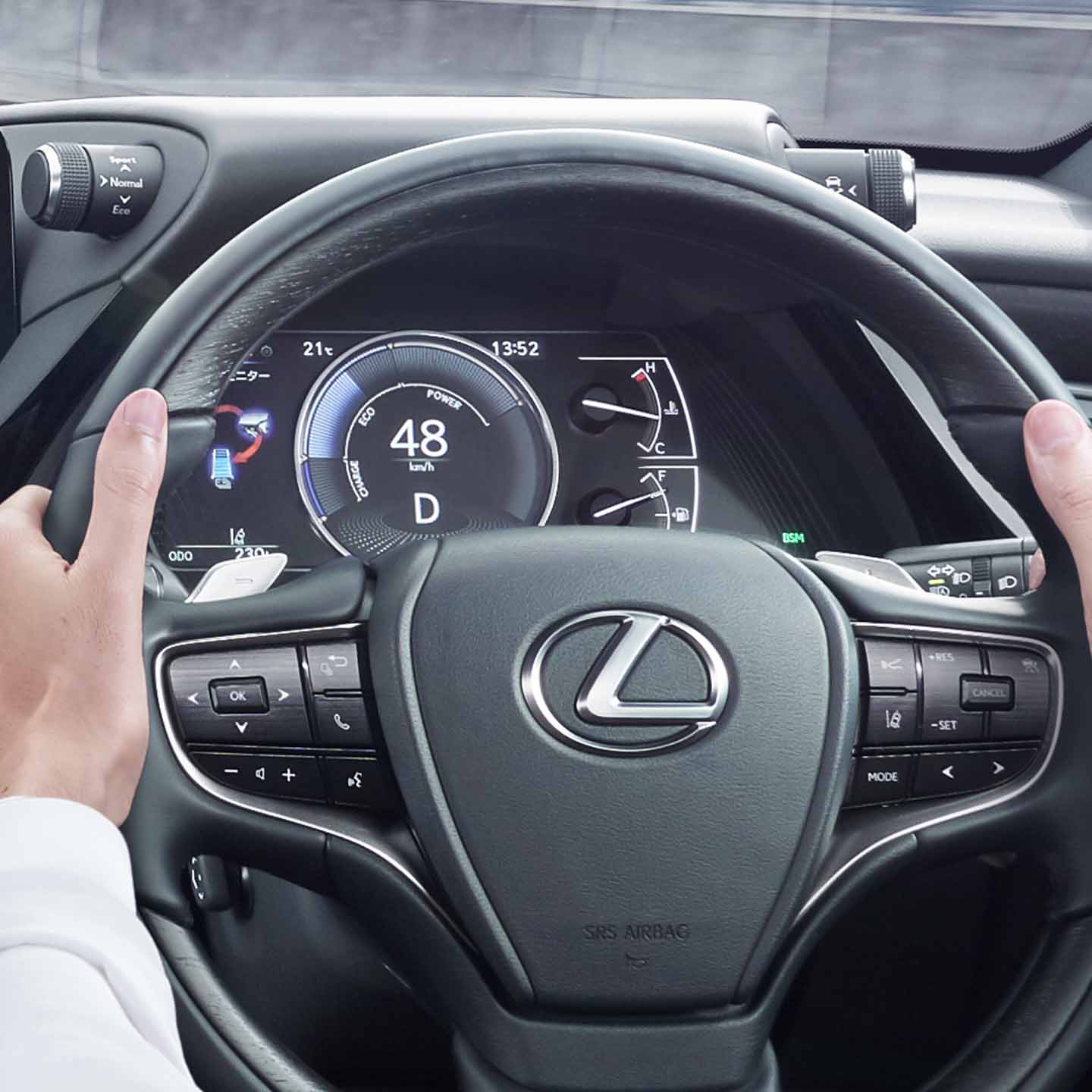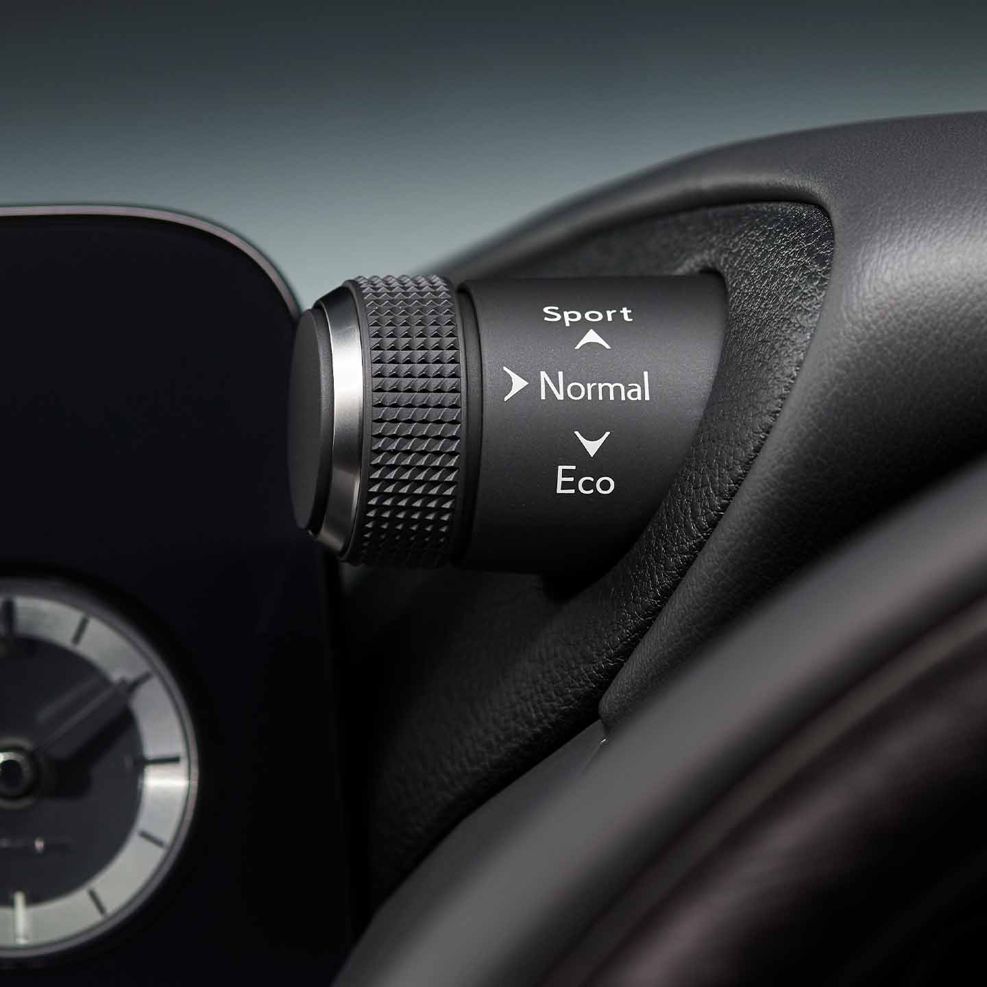 モードスイッチを切り替えることにより、走行シーンやドライバーの気分に合わせてドライビングを楽しむことができます。また、ドライブモードセレクトスイッチは、ドライバーがより運転に集中できるように、メーターフード横に配置。すぐれた操作性を実現しています。 <Sport S+> よりレスポンスにすぐれ、スポーツ走行に対応するモード <Sport/Sport S> スポーティな走行に適したモード <Normal> 市街地走行に適したモード <Eco> 環境に配慮したモード <Custom> 嗜好に合わせて設定できるモード