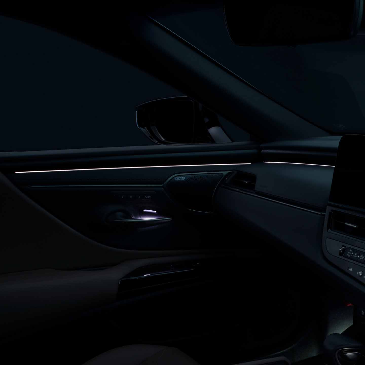 インストルメントパネルからドアトリムに沿って光るアンビエントイルミネーションが、昼間の表情とは異なる、エレガントな雰囲気を演出。夜間の走行時や乗車時に、包み込むような光がモダンで広々とした室内を豊かに彩ります。