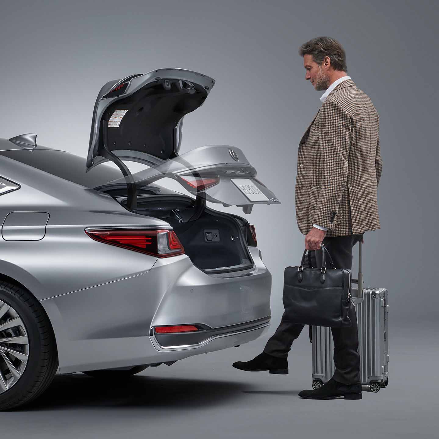 両手が荷物でふさがっている時でも、キーを携帯している状態であれば、リヤバンパーの下に足を出し入れすることでトランクリッドの自動開閉が行えます。