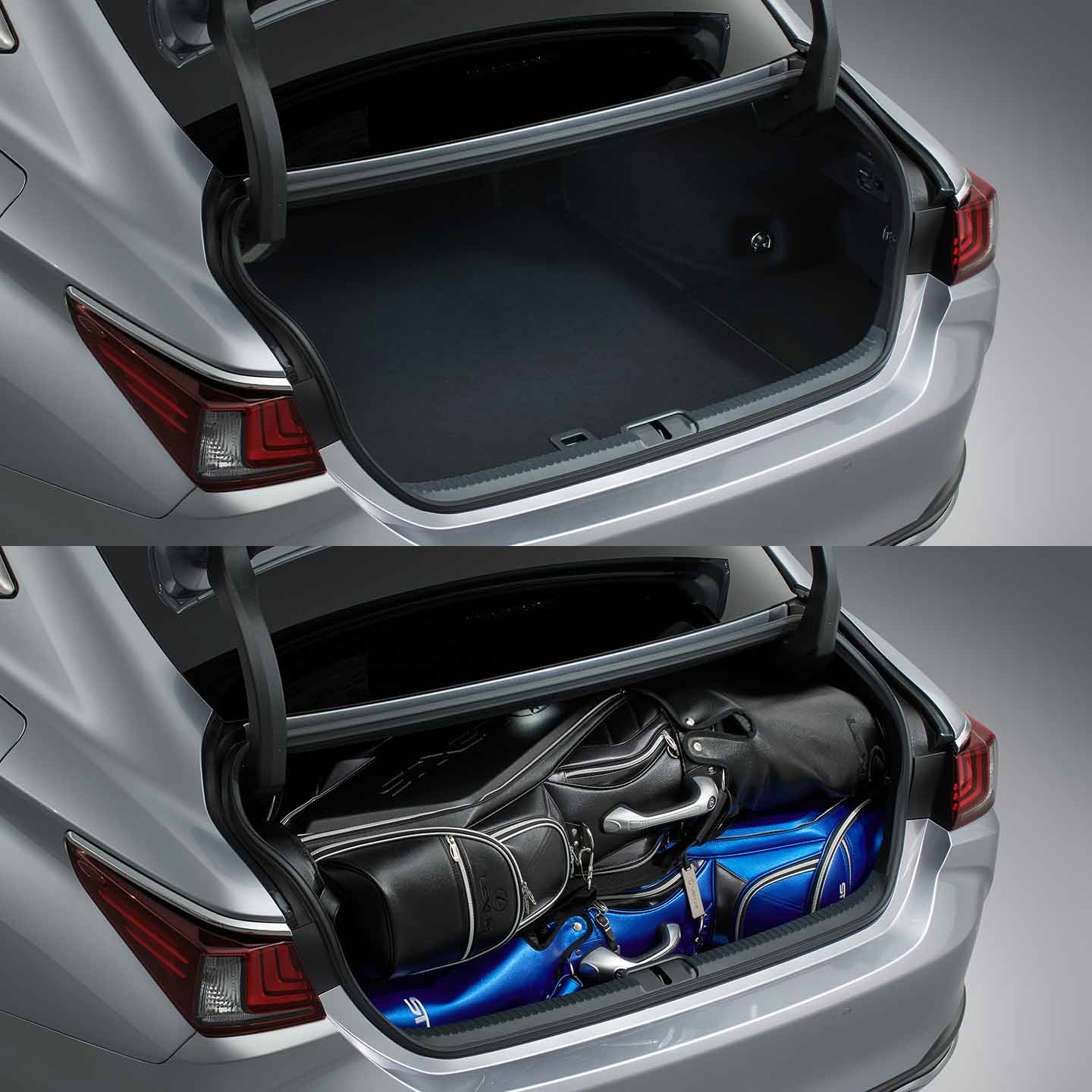 ハイブリッドバッテリーをリヤシート下に配置することにより、大容量ラゲージスペースを確保。開口や内部のトリム形状を工夫することで、大きな荷物を積み込みやすいラゲージルームとしました。全車、9.5インチのゴルフバッグを4個収納できます。