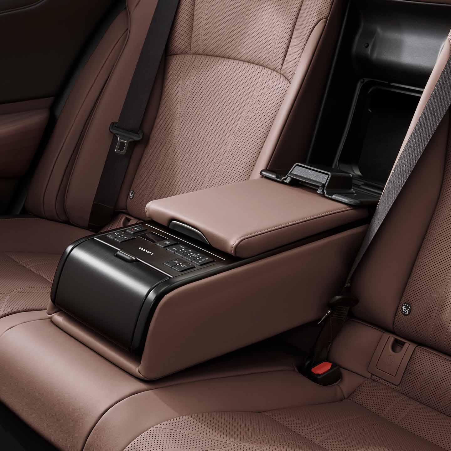 後席センターアームレストには、カップホルダーと収納ボックスを設定。ES300h“version L”には、コントロールパネルも設定。また、全車でラゲージルームに積み込めないような長さのある荷物も積載できるトランクスルー機構を標準装備しています。