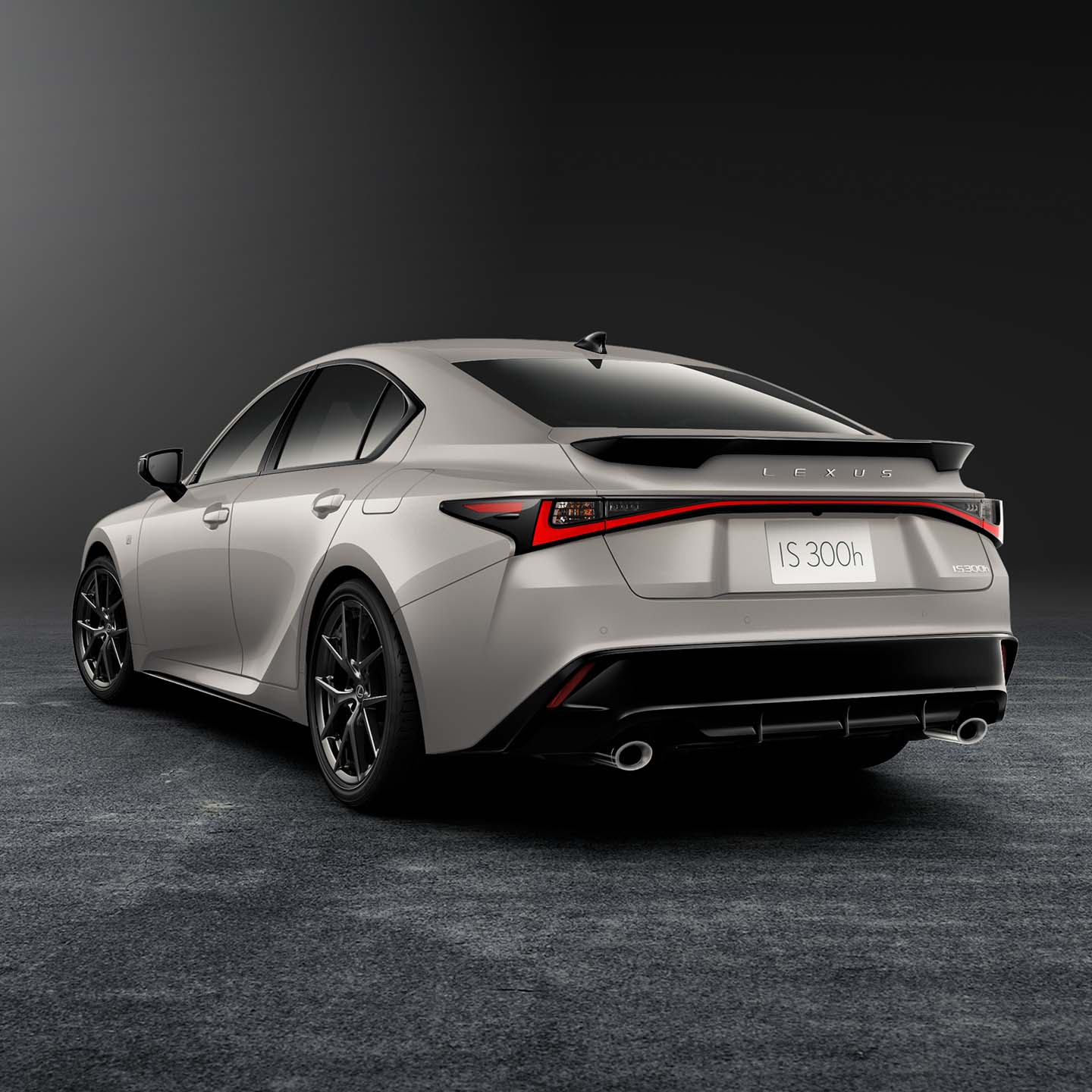 ISでめざしたのは、機能的本質や動的パフォーマンスに根差したプロポーションと独自性の追求。ブレーキダクトを取り込み低く構えたフロントフェイス。低重心かつワイドなスタンスをさらに強調し、ISらしいスポーティさをより際立たせたデザインへと進化させました。ISならではの低く伸びやかでアグレッシブなプロポーションを突き詰めたエクステリアデザインです。