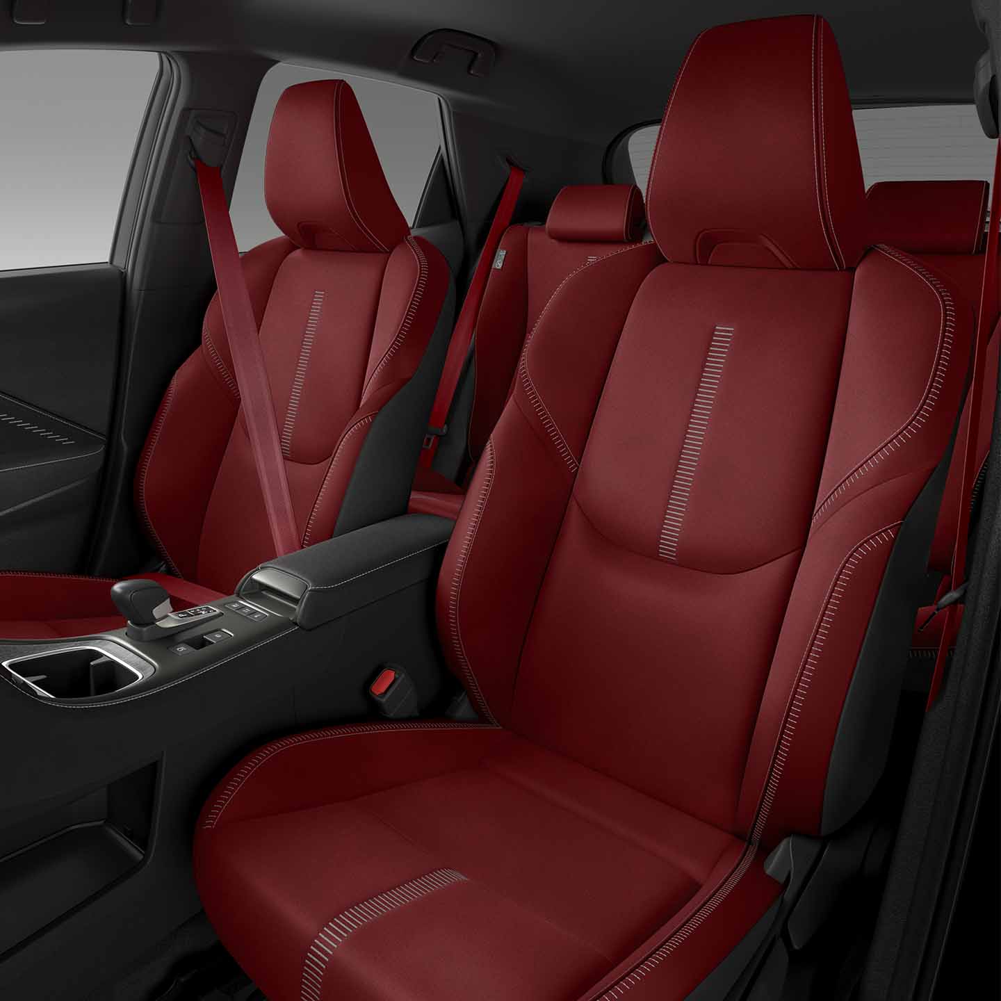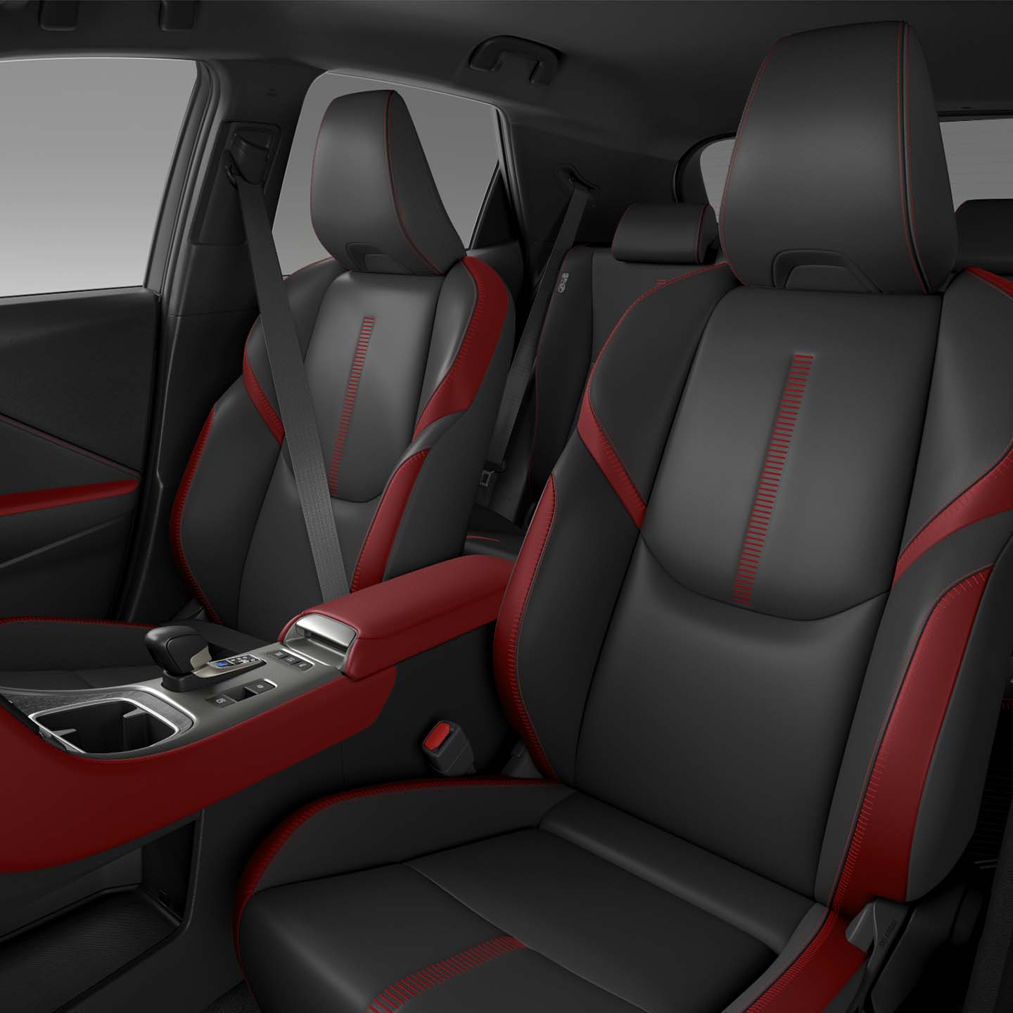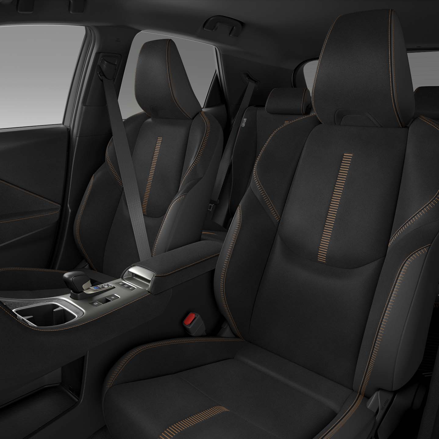 カスタマイズできるのは、表皮色、シートベルト、ステッチ色、刺繍、トリム加飾、シート配色、アルミホイールなど。内外装のさまざまなアイテムのコーディネートが可能。自分好みに仕立てたオリジナルLBXをお楽しみください。