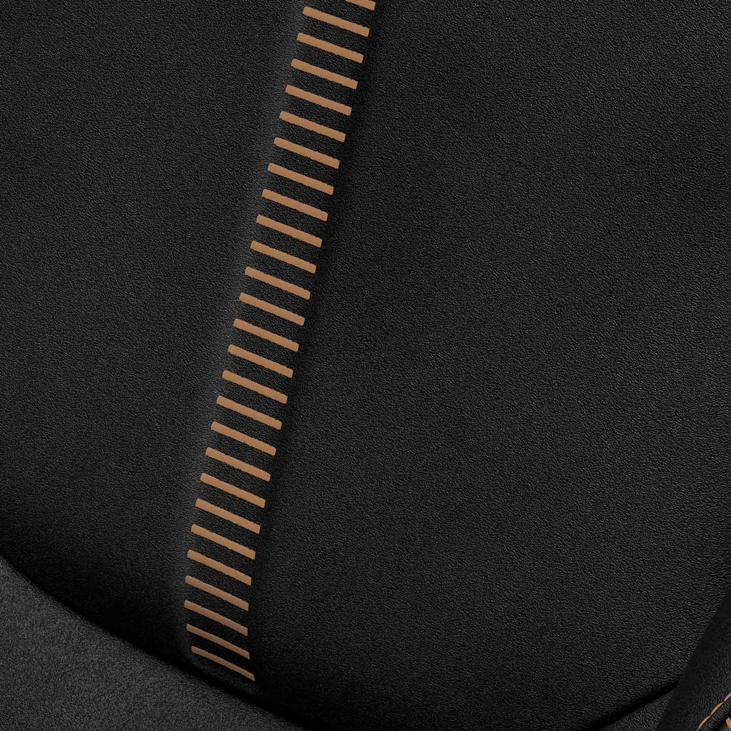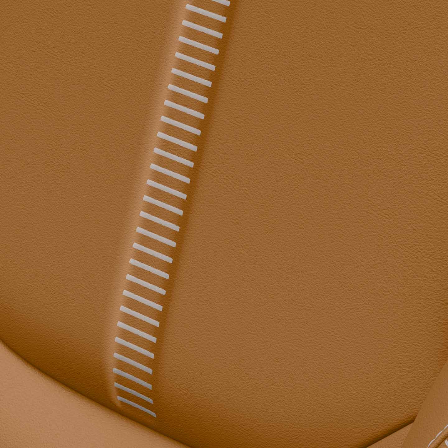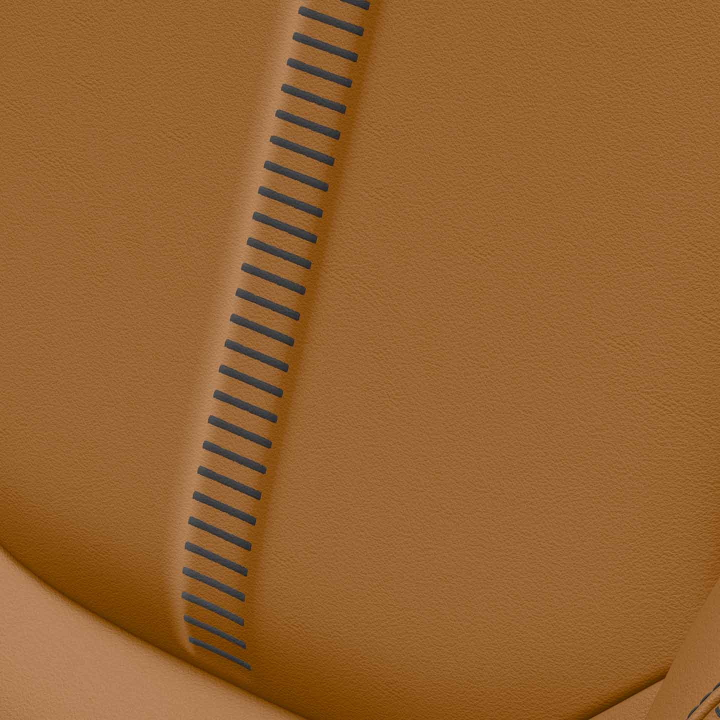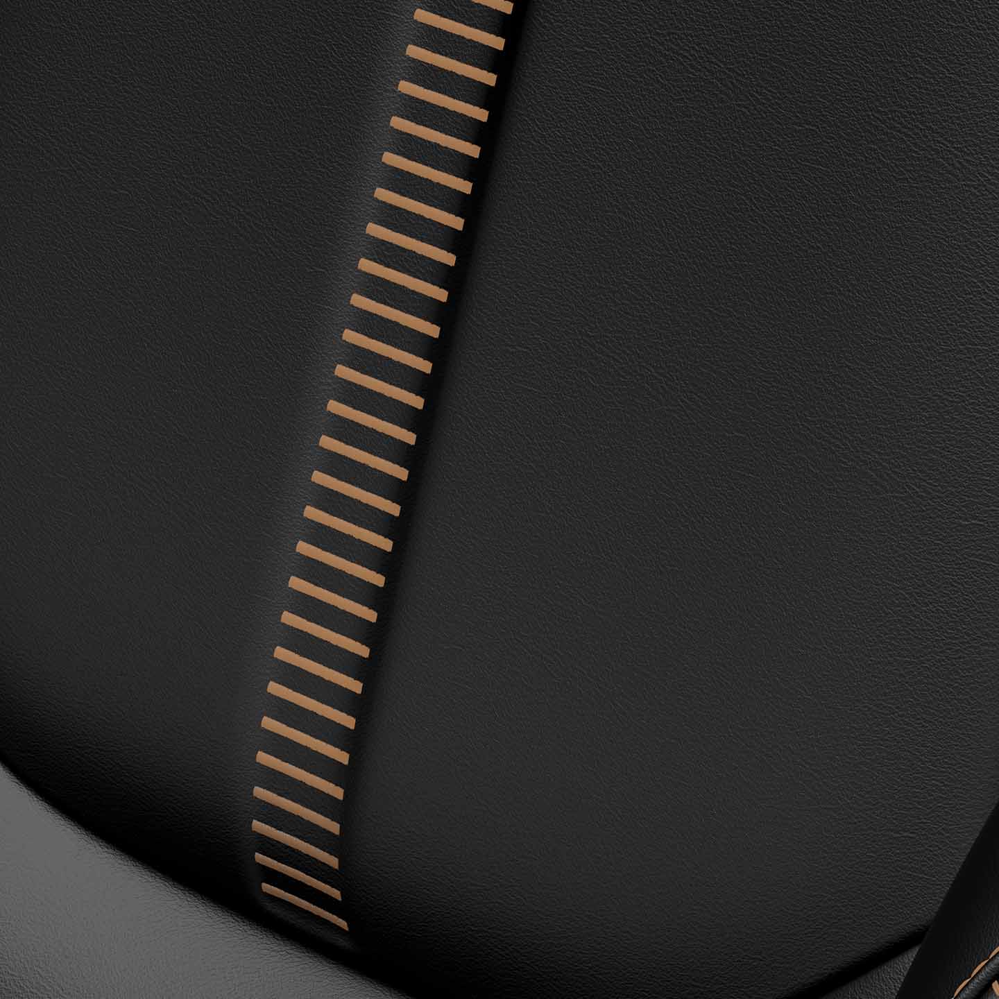 シートパターン&シートカラーのメインカラー(ソリスホワイト)、またはメインカラー(オーカー)を選択した場合、ステアリング&シフトノブ色はシート同色を選択することが可能です。シートパターン&シートカラーのアクセントカラー(ソリスホワイト)、またはアクセントカラー(オーカー)を選択した場合、ステアリング&シフトノブ色はブラックとなります。