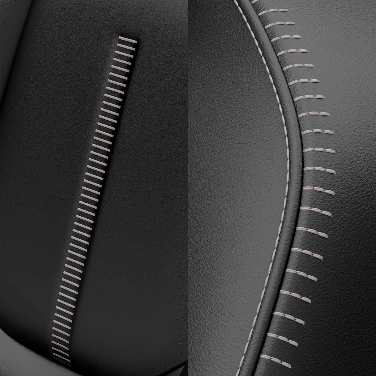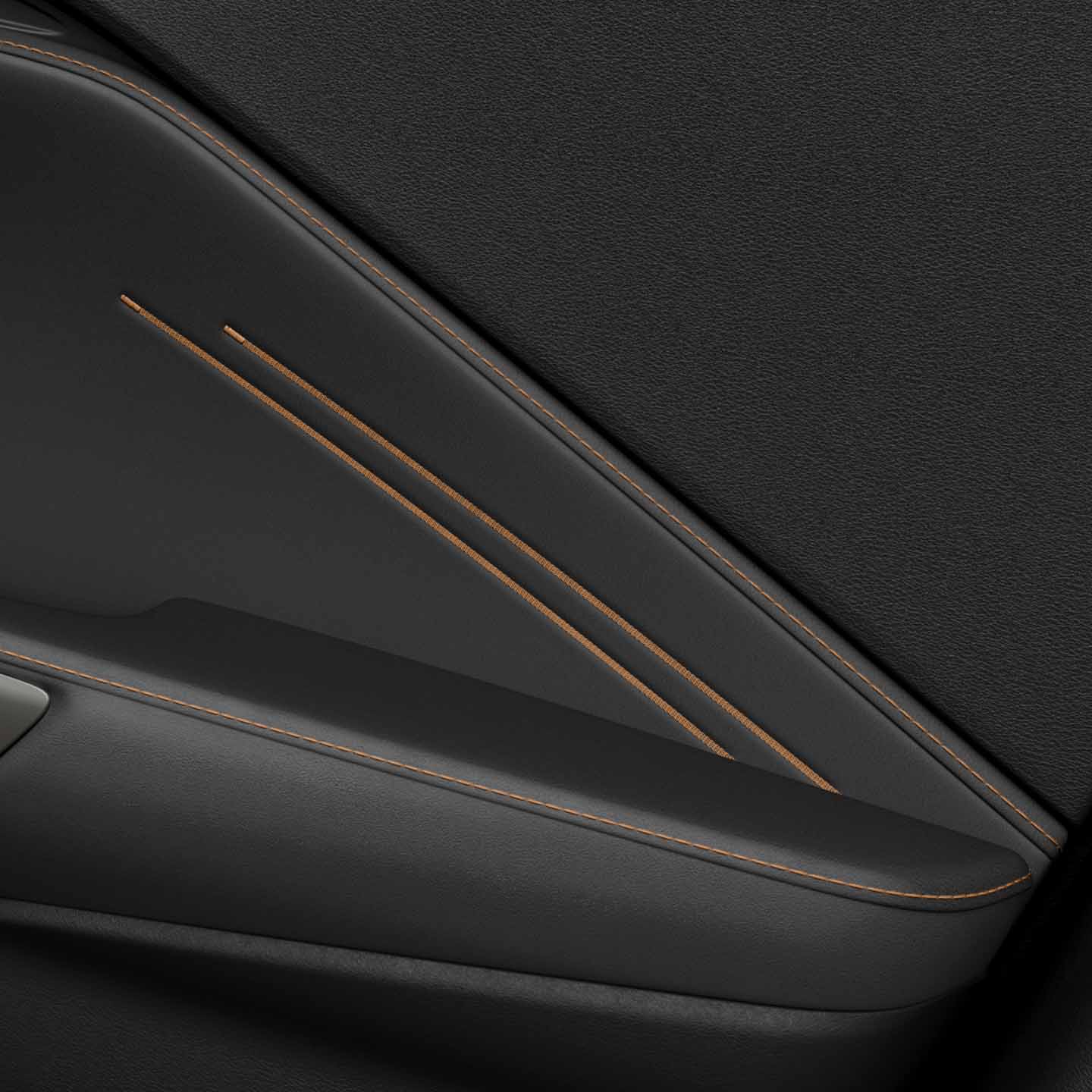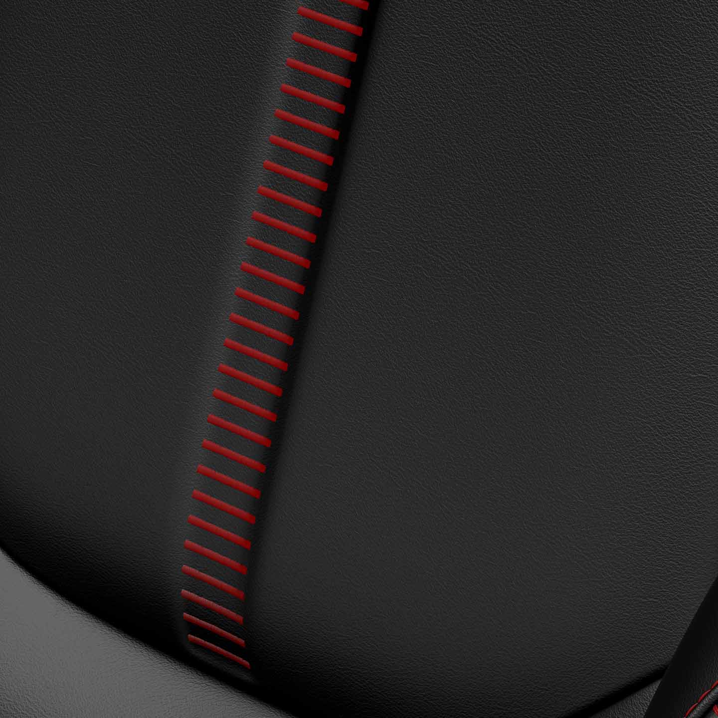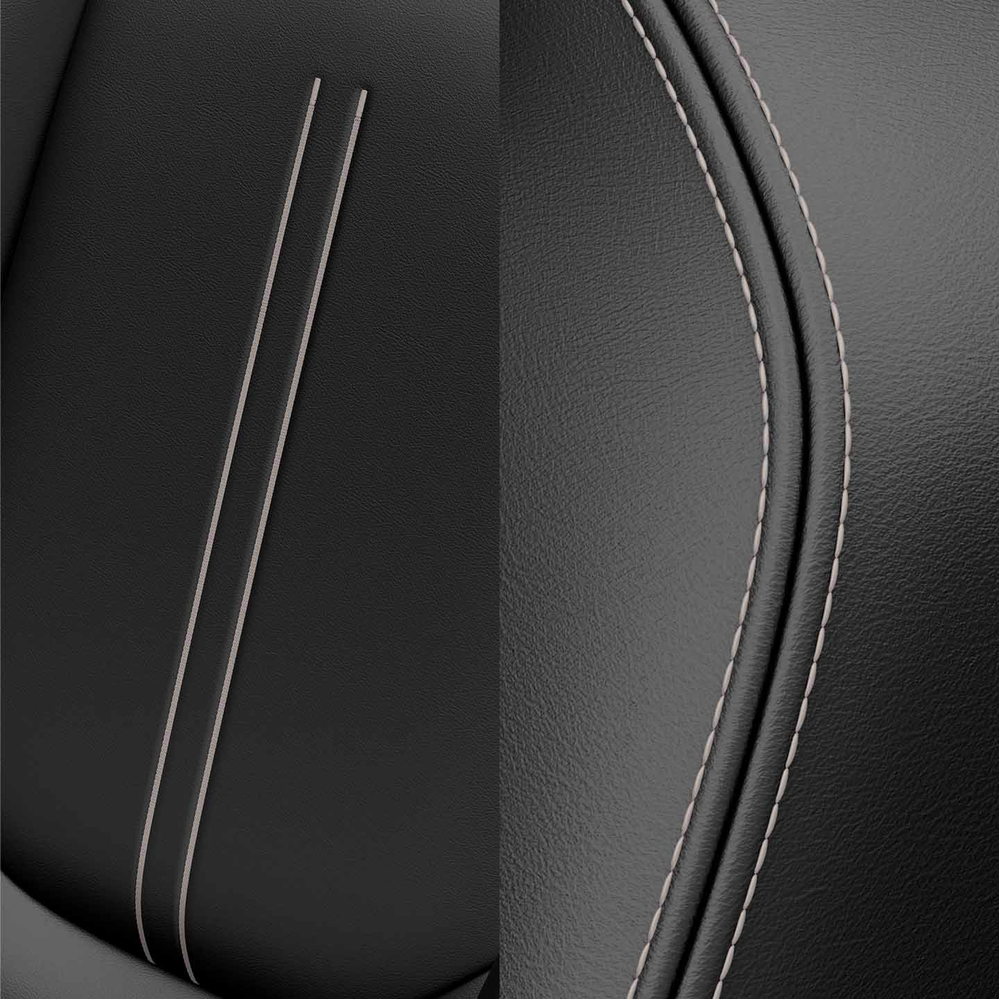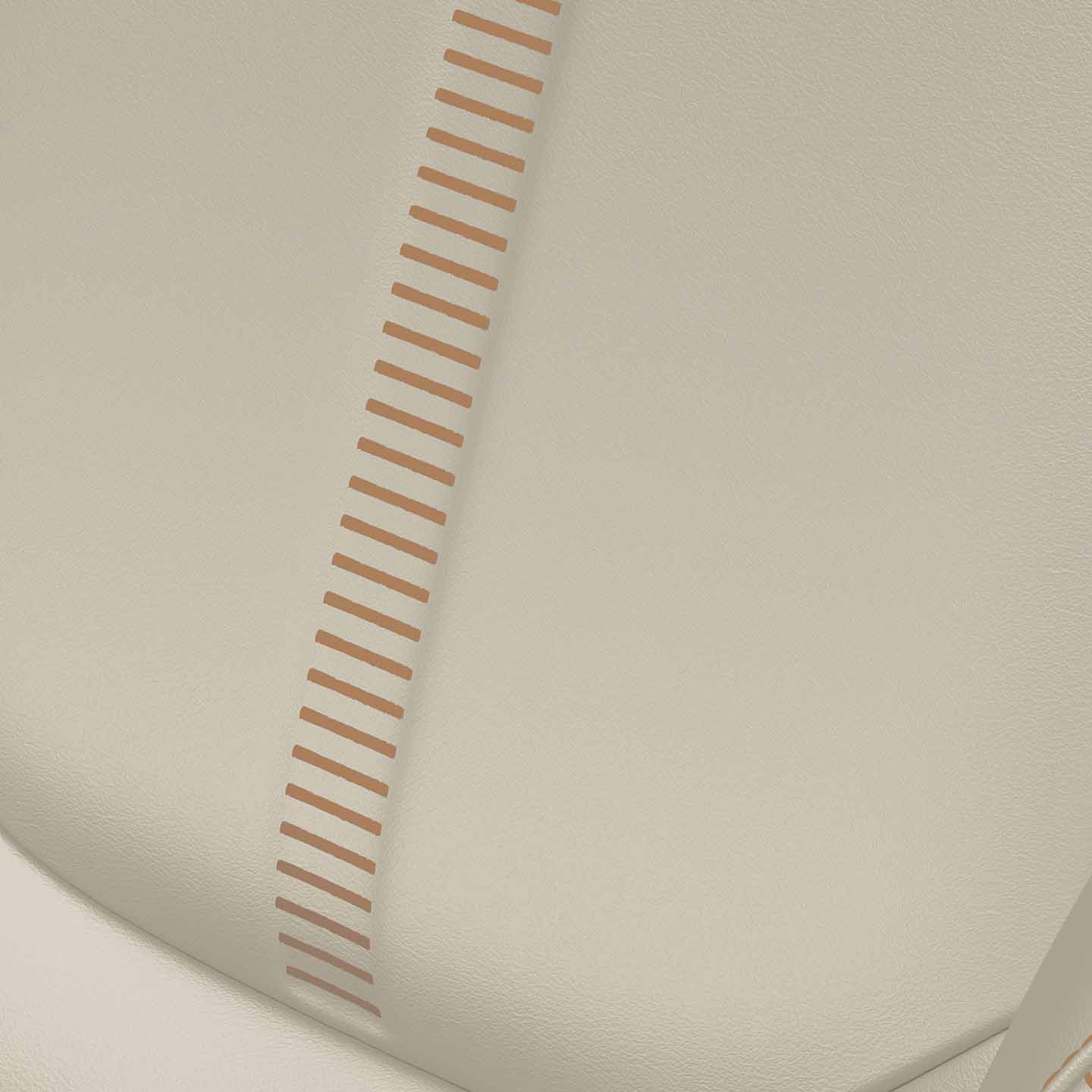 シートパターン&シートカラーのメインカラー(ソリスホワイト)、またはメインカラー(オーカー)を選択した場合、ステアリング&シフトノブ色はシート同色を選択することが可能です。シートパターン&シートカラーのアクセントカラー(ソリスホワイト)、またはアクセントカラー(オーカー)を選択した場合、ステアリング&シフトノブ色はブラックとなります。