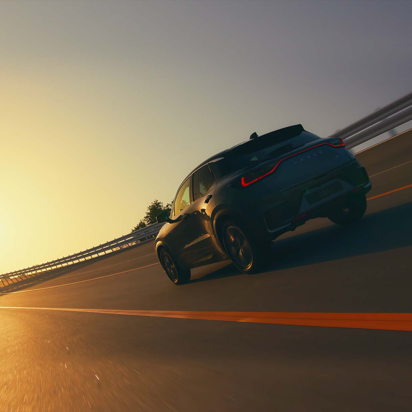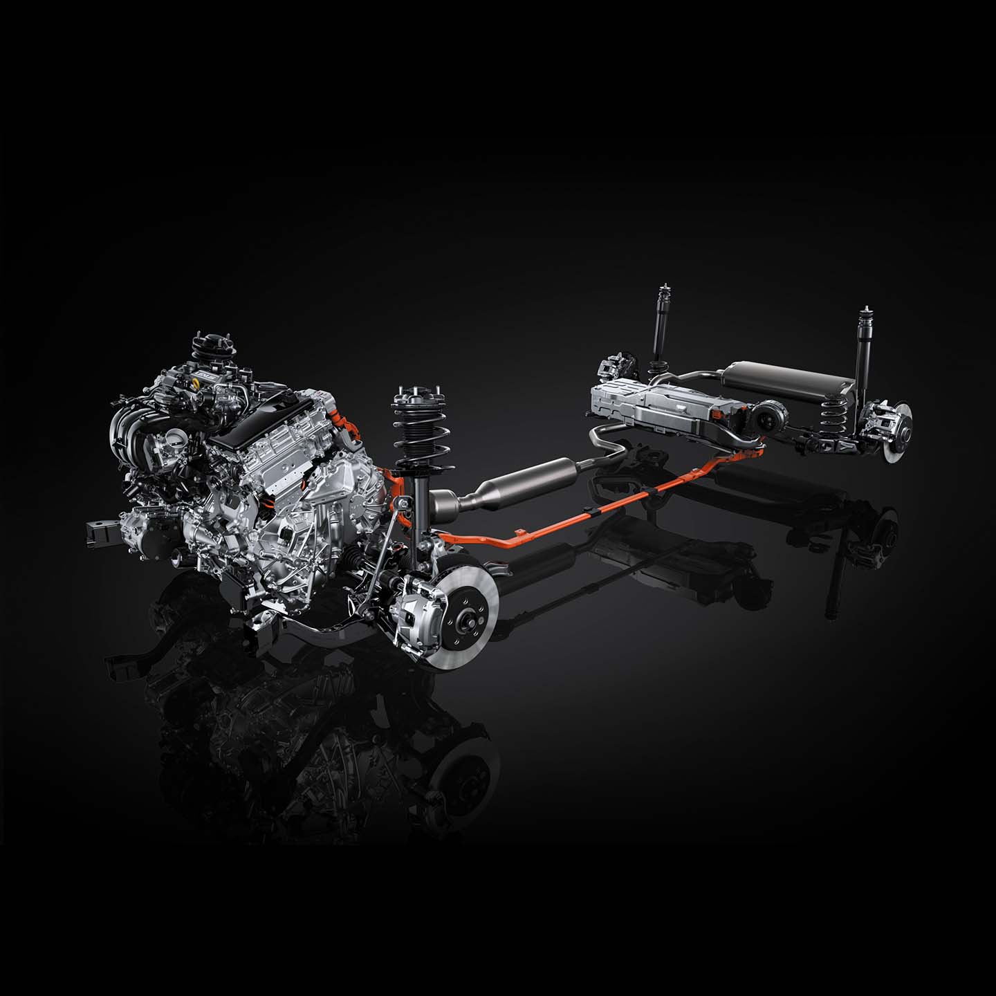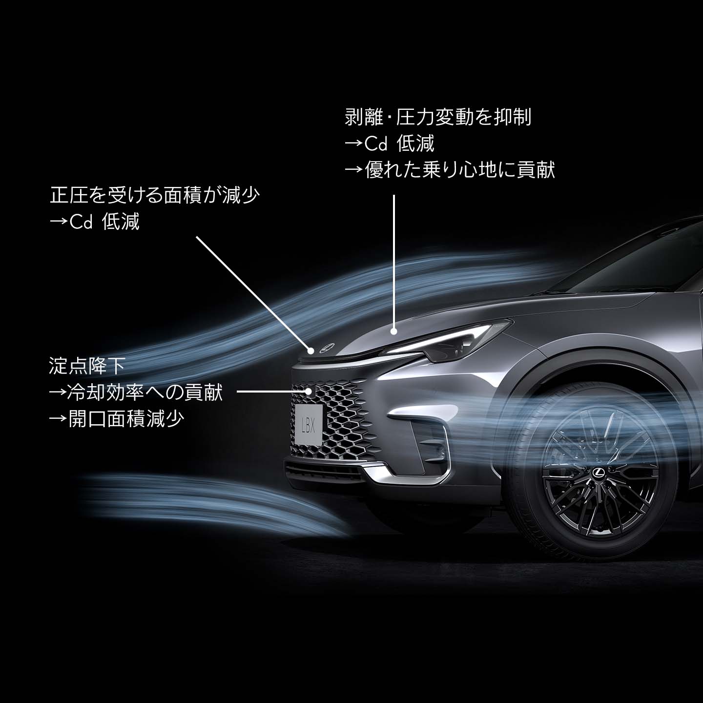 コンパクトカー向けTNGAプラットフォーム(GA-B)にLEXUS専用開発を施し、初採用。軽量かつ高剛性、低重心なボディをベースに慣性諸元の更なる最適化を追求しました。ドライバーの着座位置を下げることで重心高と全高を下げつつも十分な室内空間を確保。トレッドを拡大することで、ワイド&ロースタンスを実現しました。またクラスを超えた大径タイヤを採用しながらも、取り回しの良さにこだわり、最小回転半径5.2mを実現しました。