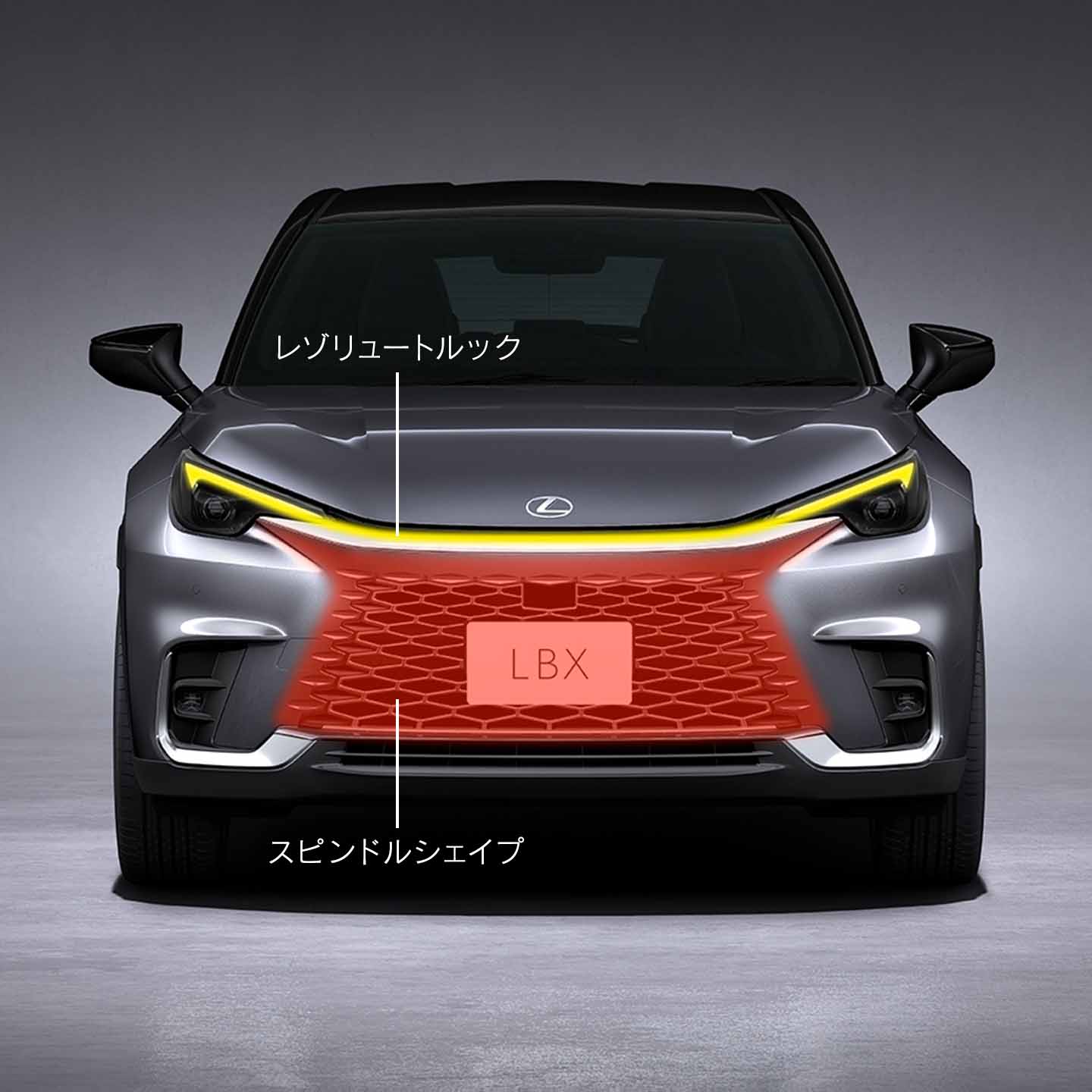 フロント機能全体を包括的に捉えたUNIFIED SPINDLEとして進化したフロントアイデンティティ。低い位置に配置したラジエーターまでスピンドルシェイプを上下に圧縮。フードとバンパー間のスリットが左右ヘッドランプにつながり、レゾリュートルック(毅然とした表情)を表現しています。