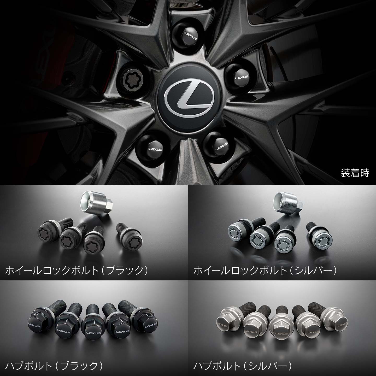 ホイールロックボルトに専用工具以外では取り外しが困難な独自形状を採用。ホイール盗難に対し高いセキュリティ性を発揮します。LEXUSロゴが高級感を際立たせるハブボルトは、ホイールに引き締まった印象を与えます。