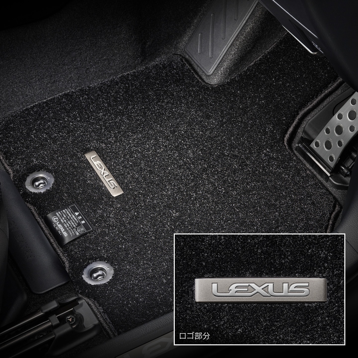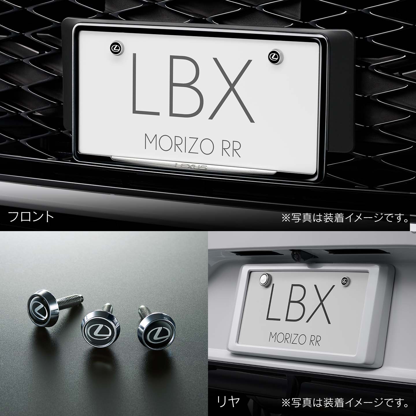 フロント用は立体感のあるフレームタイプを上質なブラックで仕上げました。リヤ用はエクステリアデザインとの一体感を重視し、ボディと同色・同質に仕上げた台座タイプのナンバーフレームです。専用工具以外ではボルトの取り外しが困難な独自形状を採用し、高いセキュリティ性を発揮します。