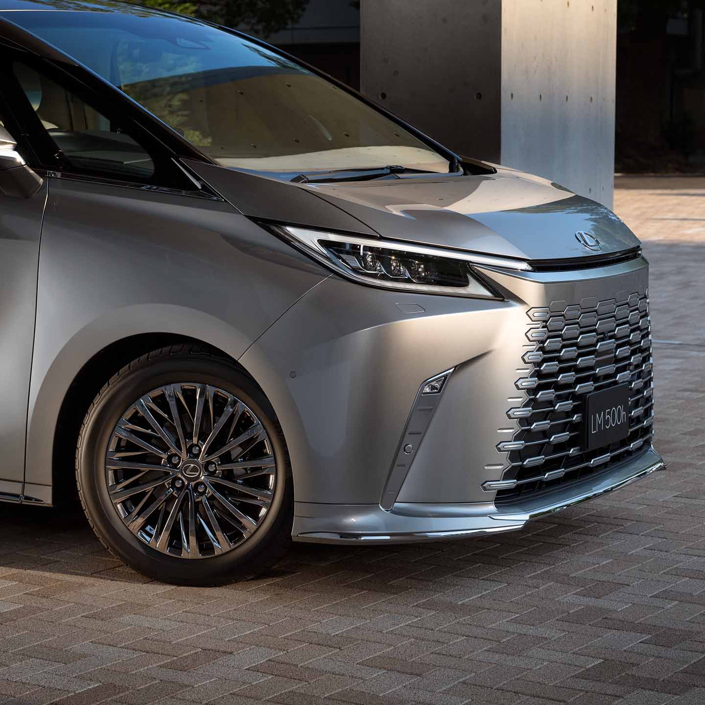 次世代LEXUSデザインのめざす「機能的本質や動的性能に根差したプロポーションと独自性の追求」を表現したエクステリアデザイン。キャビンの広さを感じさせる、リヤ席付近に最もボリュームを持たせたサイドのスタイリングと、走りの良さ・乗り心地を想起させる前後タイヤの存在感を強調した造形を融合させることで、躍動感がありながら上品で伸びやかなLM独自のフォルムを実現しました。