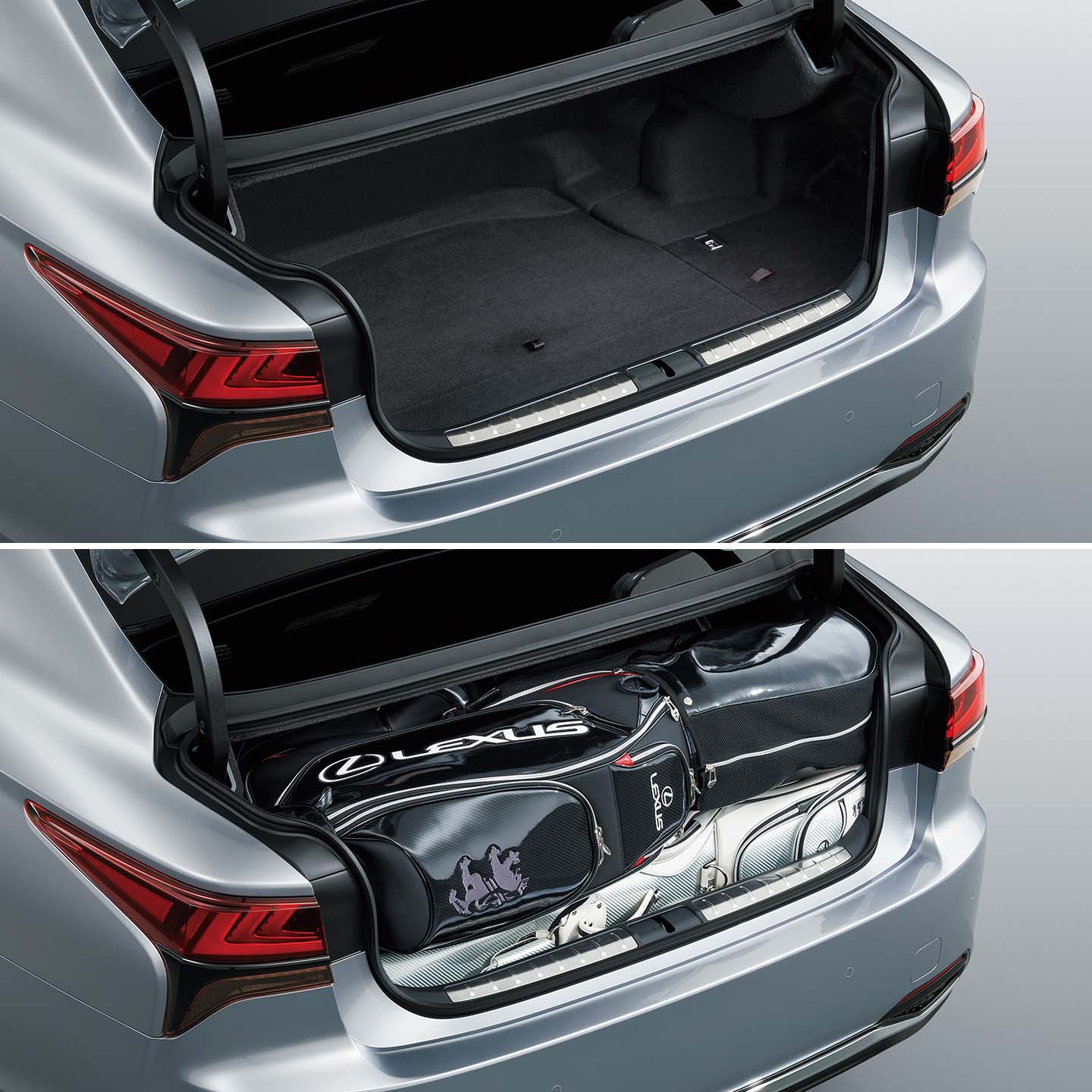 LS500hでは容量430L*1(LS500は480L*1)を確保。全車、9.5インチのゴルフバッグを4個*2収納できます。