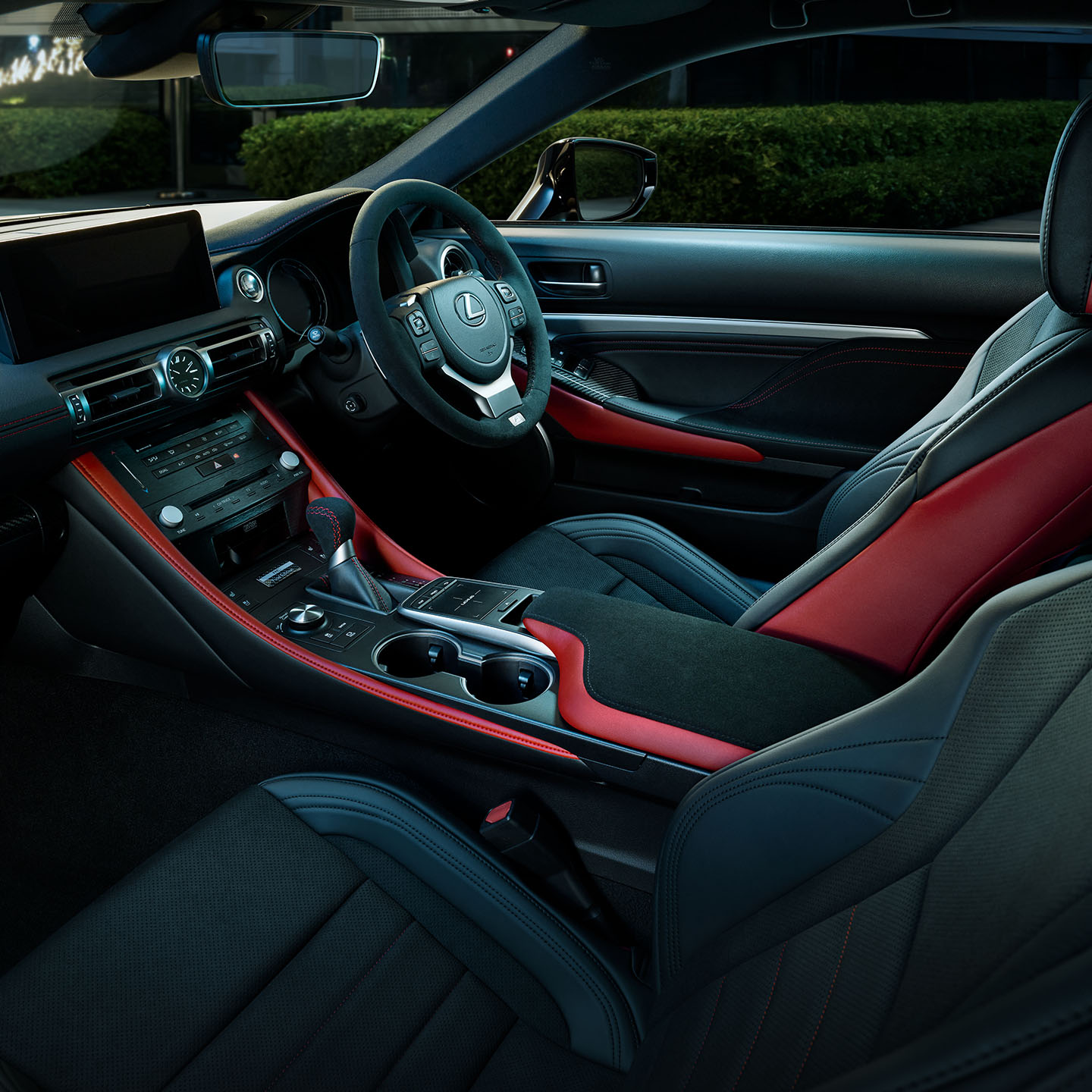 クルマとの濃密な一体感を生み出す低いポジションに構えたスポーツシート。上質でありながら走りへの情熱を駆り立てるインテリアの仕立てで自然と気持ちが高まる空間デザインです。