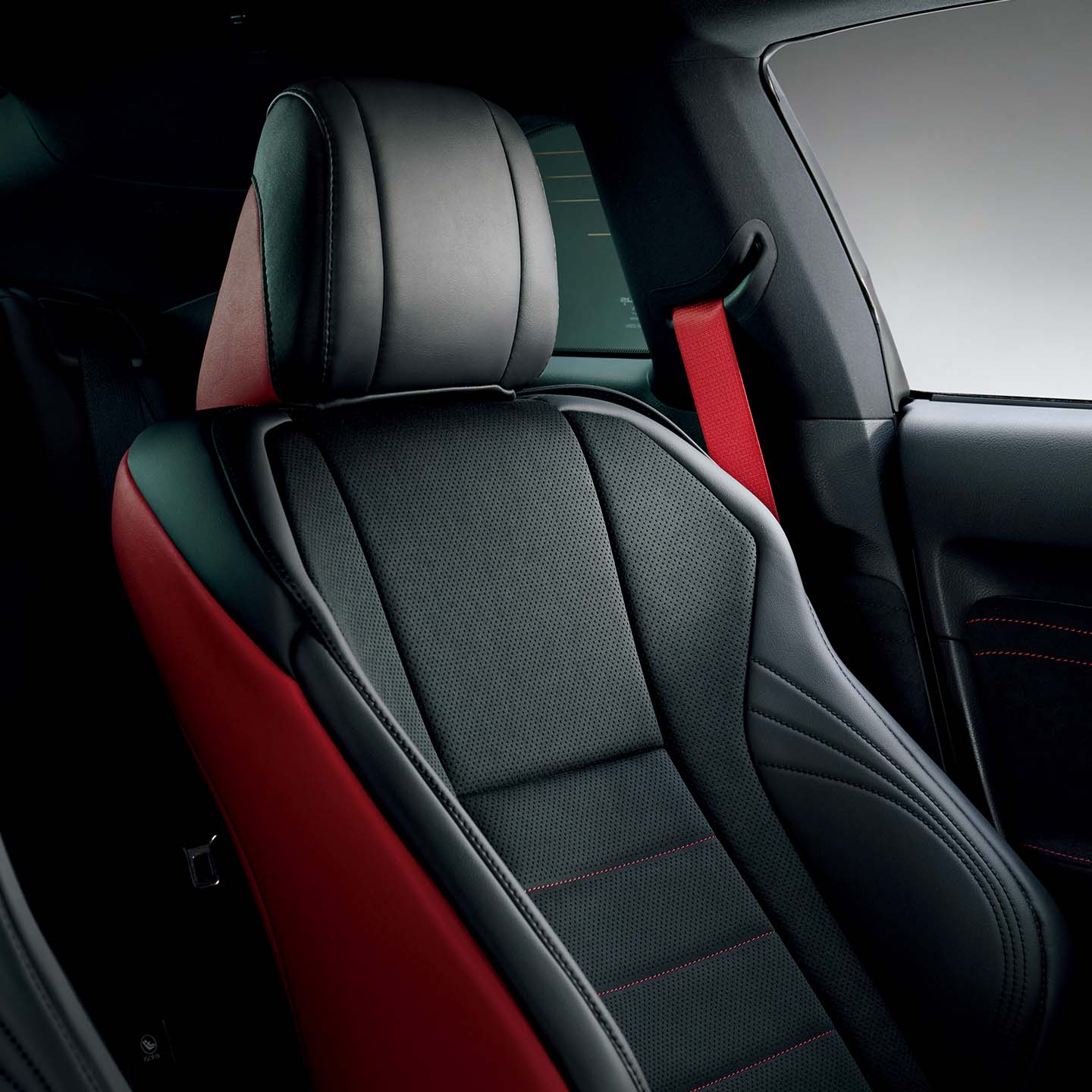 シートの成型に表皮一体発泡工法を採用したスポーツシート。シートと表皮を一度に成型することで生まれる理想的な凹断面により、シャープなデザイン、すぐれたフィット感と高いホールド性を実現します。快適な座り心地とともに、スポーツ走行時には身体を確実にサポート。クルマとの一体感を生み出し、アグレッシブなドライビングを支えます。