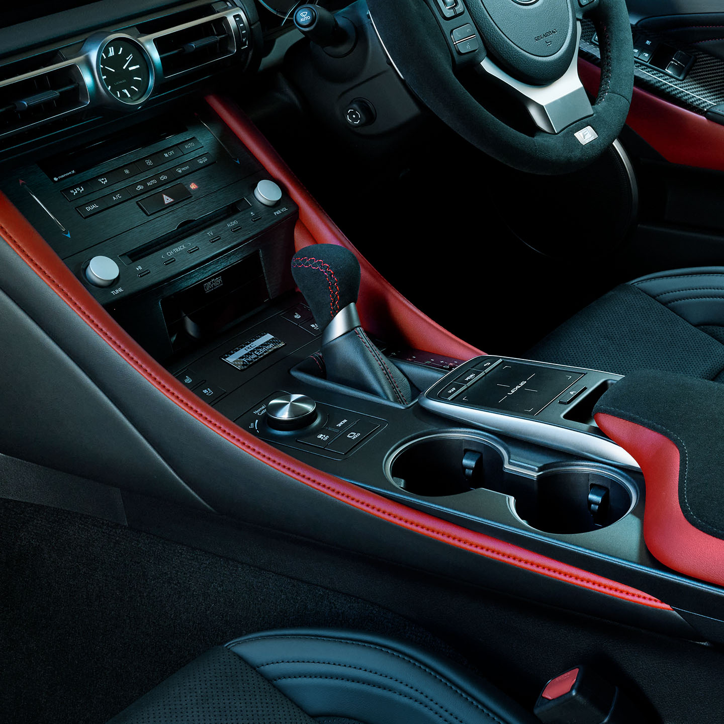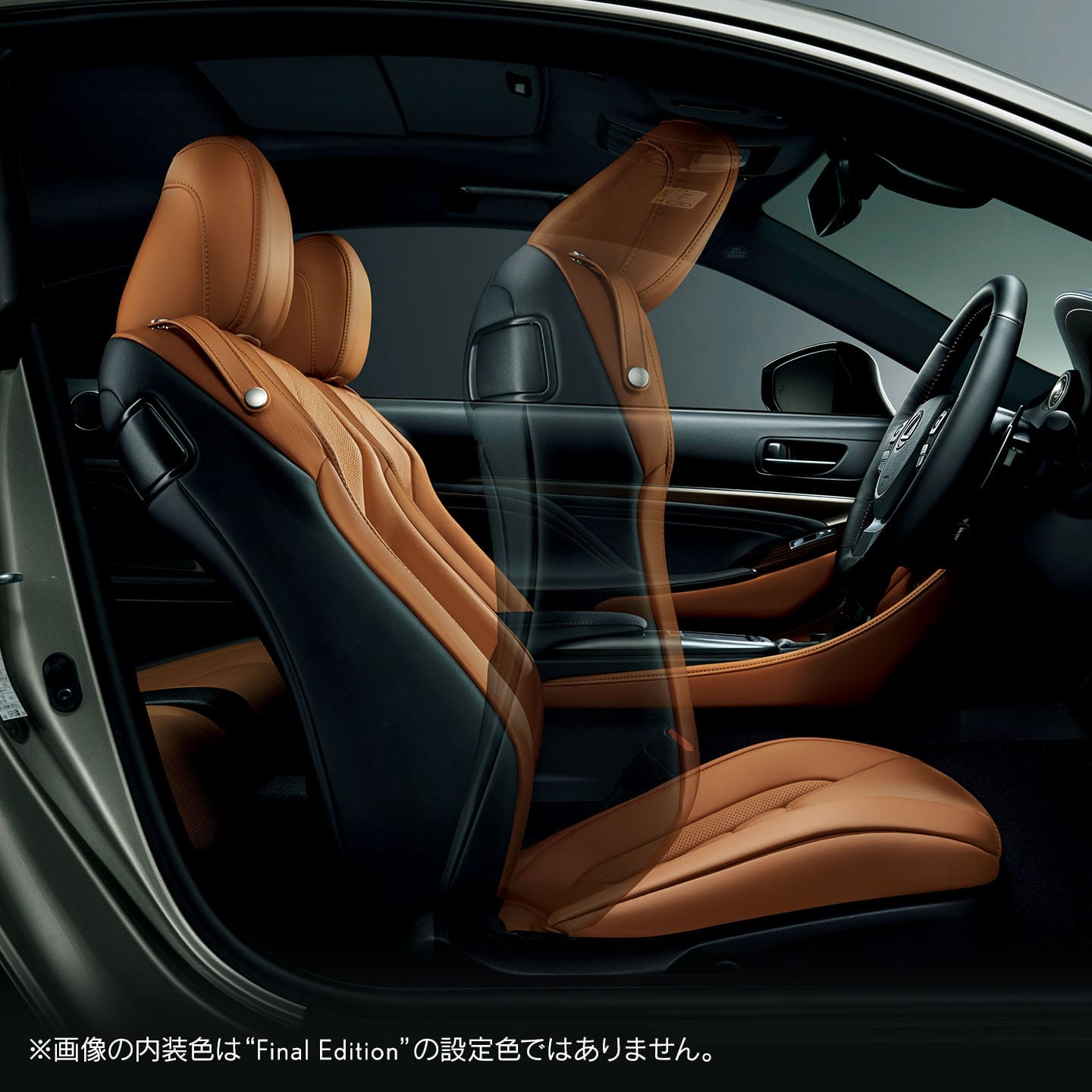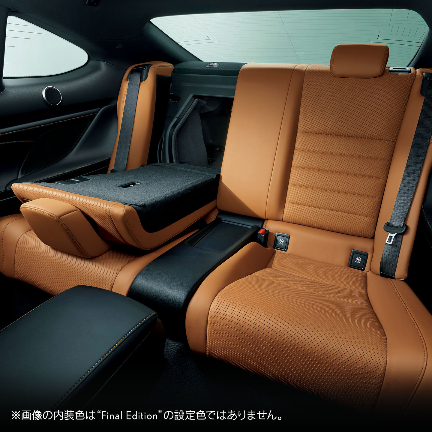 全車で9.5型のゴルフバッグを2個収納することができます。また、後席6:4分割可倒式シート(セキュリティロック付)により、ラゲージルームの使い勝手を向上しています。RC300h “Final Edition”は、ハイブリッド駆動用バッテリーをラゲージルームのデッキ下に格納し、スペースに余裕を生み出しています。