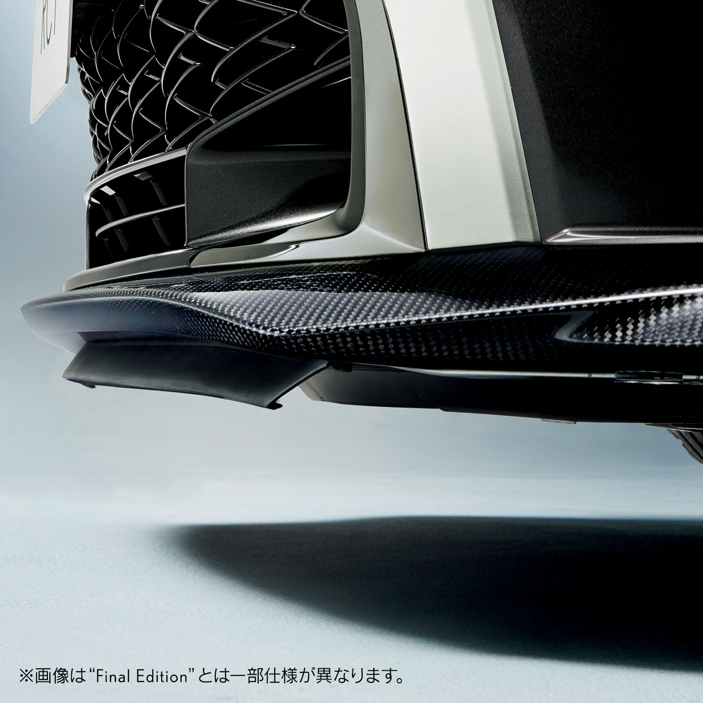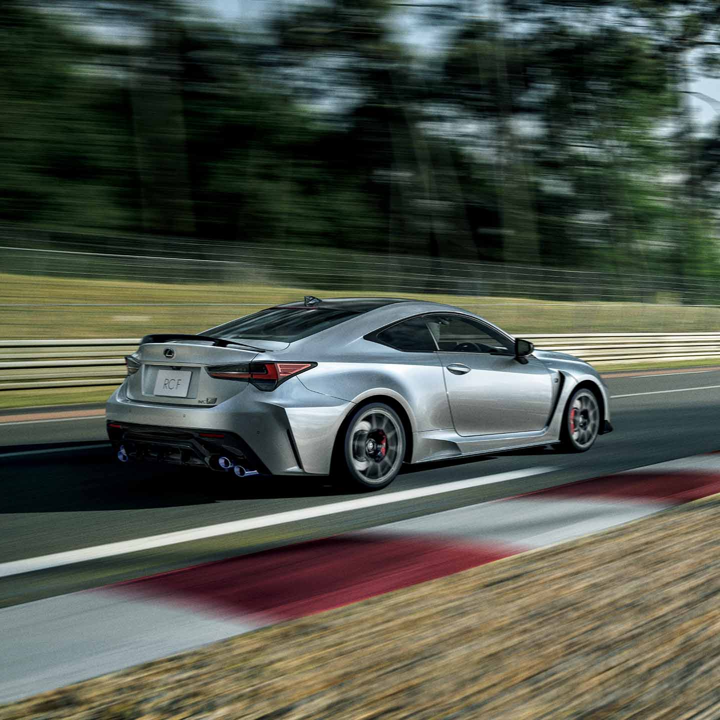 サーキットでは、特に限界域での車両コントロール性に取り組み、「意のままに走る歓び」を得るため、空力性能や軽量化を徹底しました。エクステリアデザインは「機能をどうカタチにするか」がより重要となります。日本のSUPER GTや米国のデイトナ24時間レースなどモータースポーツで蓄積したノウハウを最大限デザインに落とし込みました。空力性能に特化した、言うなれば「レース育ちのスタイリング」です。軽量化は、新たに設計するすべての部品を対象とし、レーシングカーさながらグラム単位で軽さを追求しました。結果、約ー20kg*の軽量化を実現。アクセルワークで荷重をコントロールするスポーツ走行を自在に楽しめます。操縦性にも大きく手を加えています。限界域でのグリップ性能にすぐれるタイヤを採用し、さらにサスペンションの横剛性を高めたことで、ダイレクトなステアリングレスポンスを獲得しました。開発の舞台となったToyota Technical Center Shimoyamaで徹底した走り込みを実施し、コーナーから立ち上がる際の加減速への応答性、直線での雑味のないシルキーな加速感を磨き上げることで、“F”ならではの力強く、伸びやかな走りはそのままに、より上質な乗り味を実現しました。