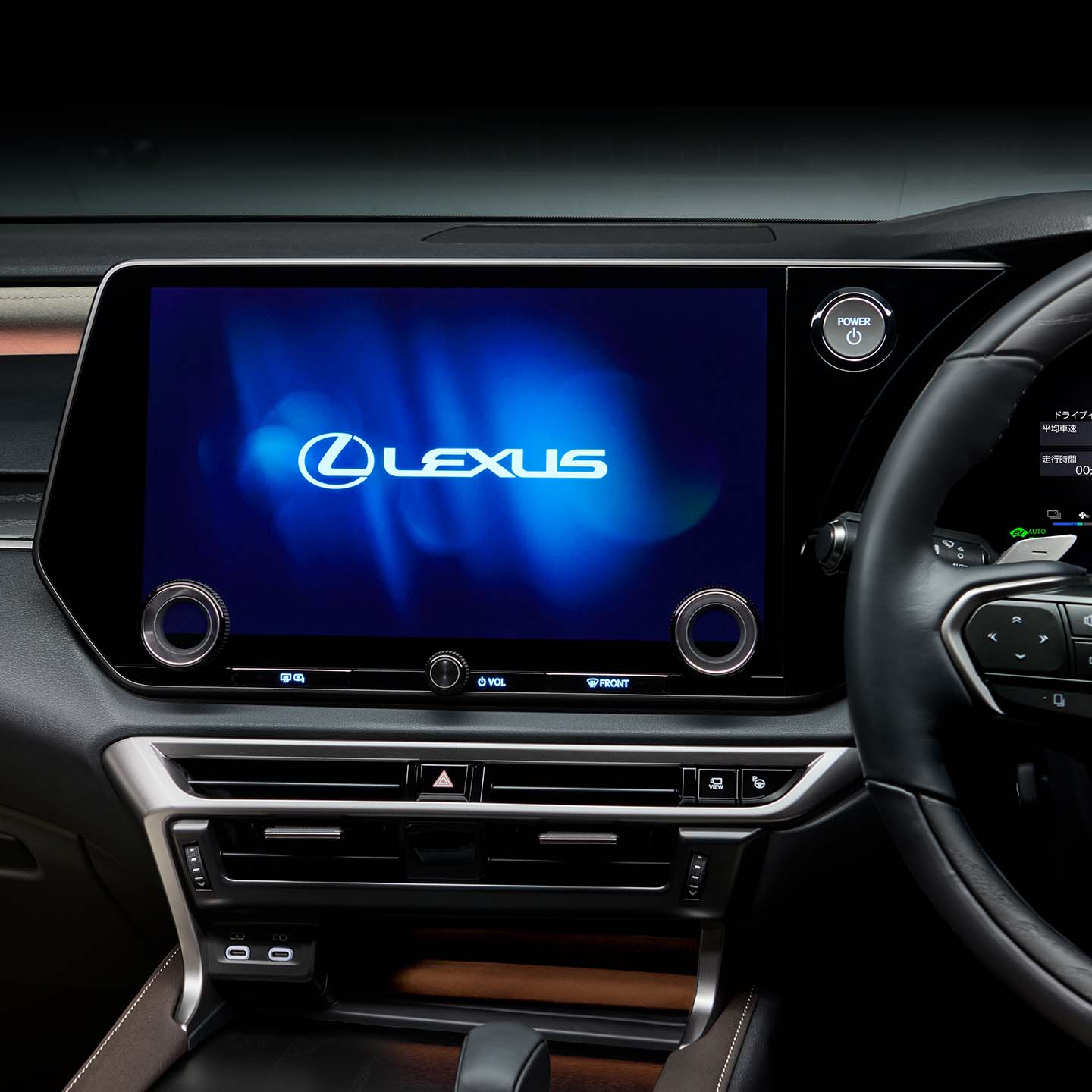 多くの機能をディスプレイ内のソフトスイッチに集約。スイッチのサイズや形、レイアウト、表示情報など細部までこだわり、画面をタッチする際の操作性に配慮しています。また、空調の温度調整やオーディオの音量操作は、運転時にも使いやすいダイヤルスイッチです。