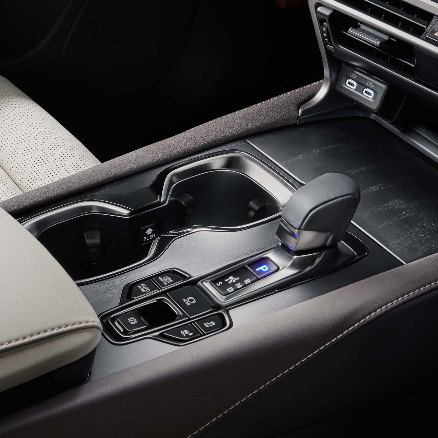 シフトバイワイヤを採用し、シフトレバーを開発。小気味良い操作感、山谷がはっきりとしたクリック感を追求しました。ショートストロークかつシフト操作のピーク荷重を低減することで、扱いやすく軽快な操作感を実現しています。