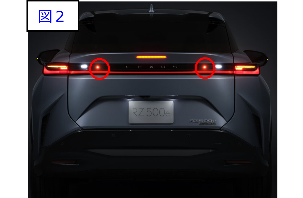 | リヤフォグランプ | 霧・雪・雨などにより視界が悪い時に車の存在を後続車に知らせるための赤色灯です。 リヤフォグランプは、バックアップランプ内側(左右両側)に装着されます。(下図2参照) |