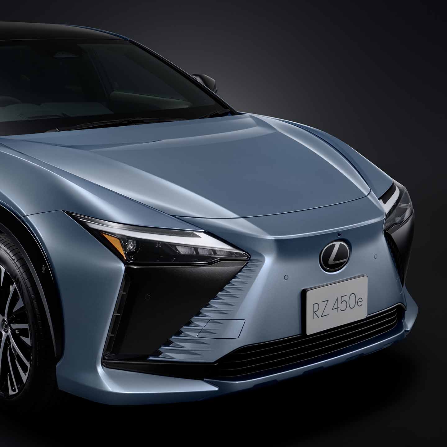 エンジン冷却用のフロントラジエーターがなくなるBEV(電気自動車)の特長を反映し、レクサスの象徴となったスピンドルグリルから、塊を強調したスピンドルボディを採用。ヘッドランプおよびバンパーコーナーをブラックアウトし、センターのスピンドルボディを強調することで一目でレクサスBEVとわかるアイコニック表現としました。バイトーンの外板色ではフロントからルーフまでソリッドブラックを配し、スピンドルボディがより強調されるカラーリングとなっています。
