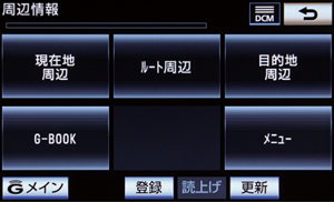 周辺情報で自動取得する情報をあらかじめ設定しておけば、車載機(ナビ)がセンターに自動接続をおこない、目的地周辺の到着予想時刻の天気やルート周辺の強風や豪雨などの気象情報を音声と地図上のアイコンでご案内します。